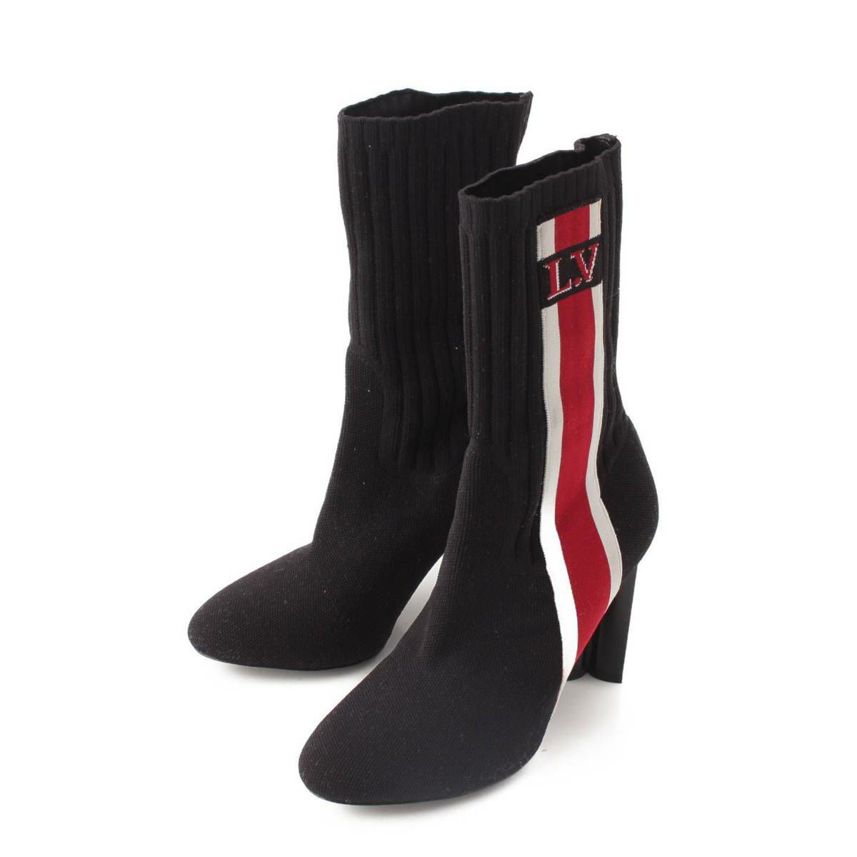 ルイヴィトン ロゴ シルエットライン ニット ソックス ヒール ショートブーツ ブラック 35