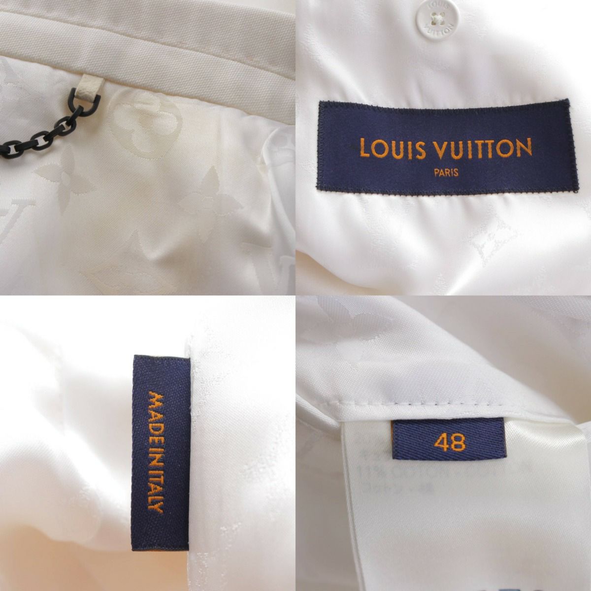 ルイヴィトン 21SS メンズ 70s モノグラム裏地 ショルダーパッド テーラードジャケット ホワイト 48