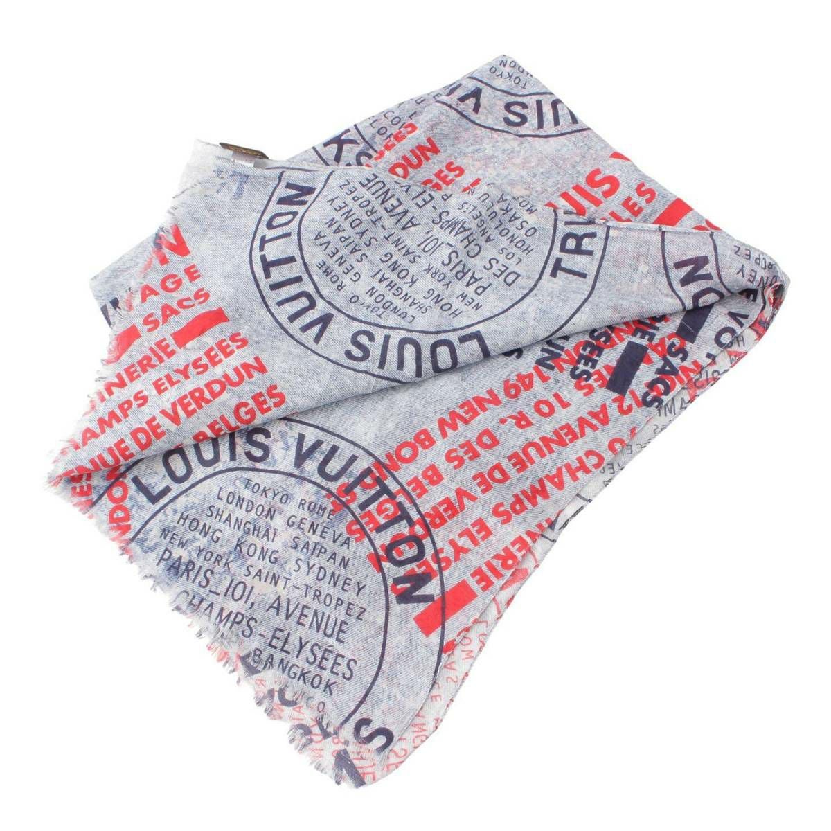 ルイヴィトン Louis Vuitton メンズ エトール デニムスタンプ 総柄 コットン リネン ストール M78538 サックス