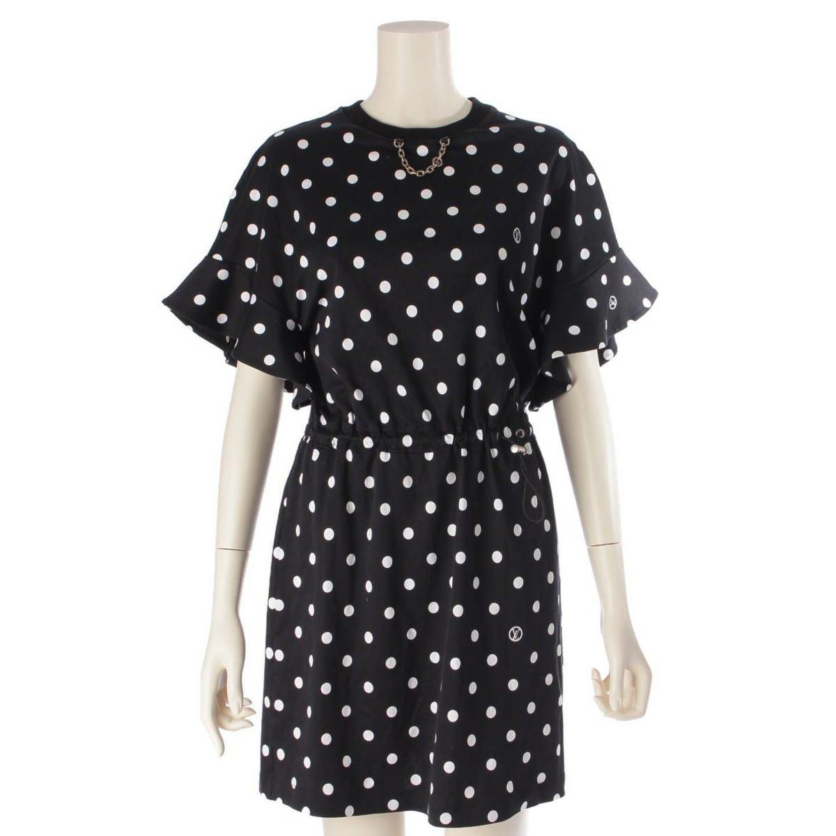 ルイヴィトン 22SS フラウンス ポルカドット ワンピース ドレス 1A9Y2A ブラック XS