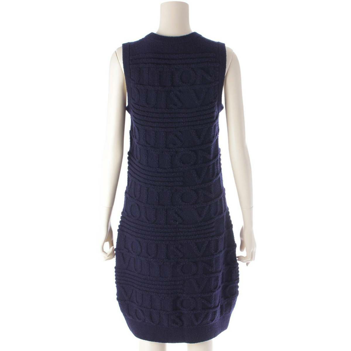 ルイヴィトン 20年 ロゴエンボス ノースリーブ ニット ワンピース ドレス ネイビー M