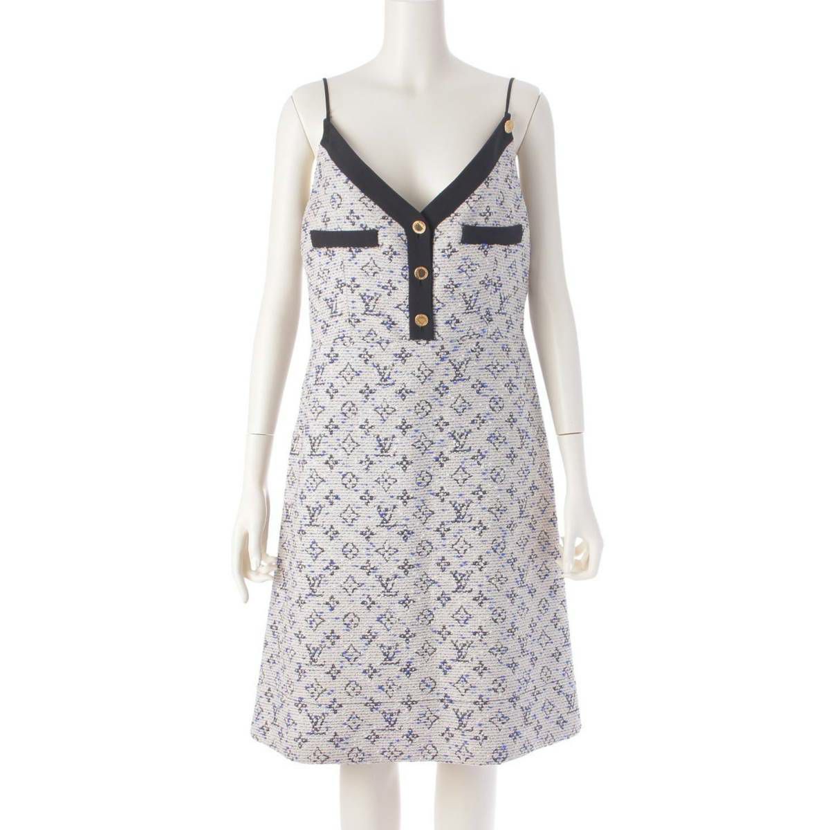 ルイヴィトン Louis Vuitton 19年 モノグラム ツイード キャミソール ひざ丈 ドレス ワンピース マルチカラー 42