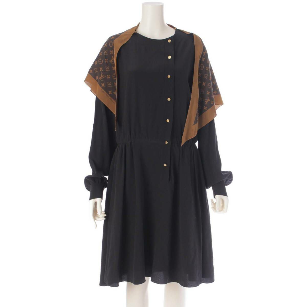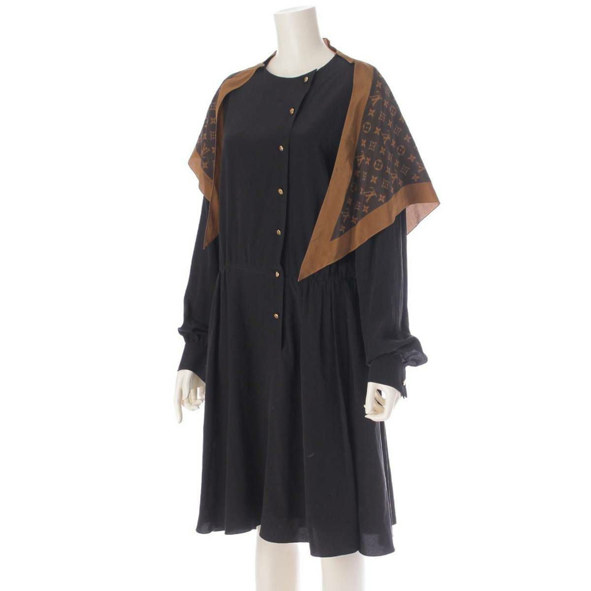 ルイヴィトン 21年 モノグラム シルク スカーフ ニーレングスドレス ワンピース ブラック 40