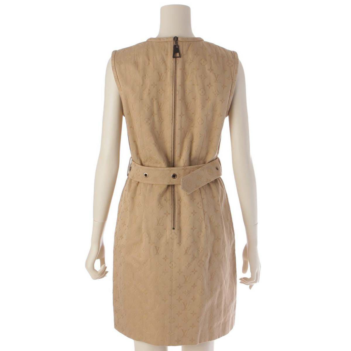 ルイヴィトン Louis Vuitton 21年 モノグラム コットン ジップ ベルト ノースリーブ ワンピース RW211W ベージュ 38