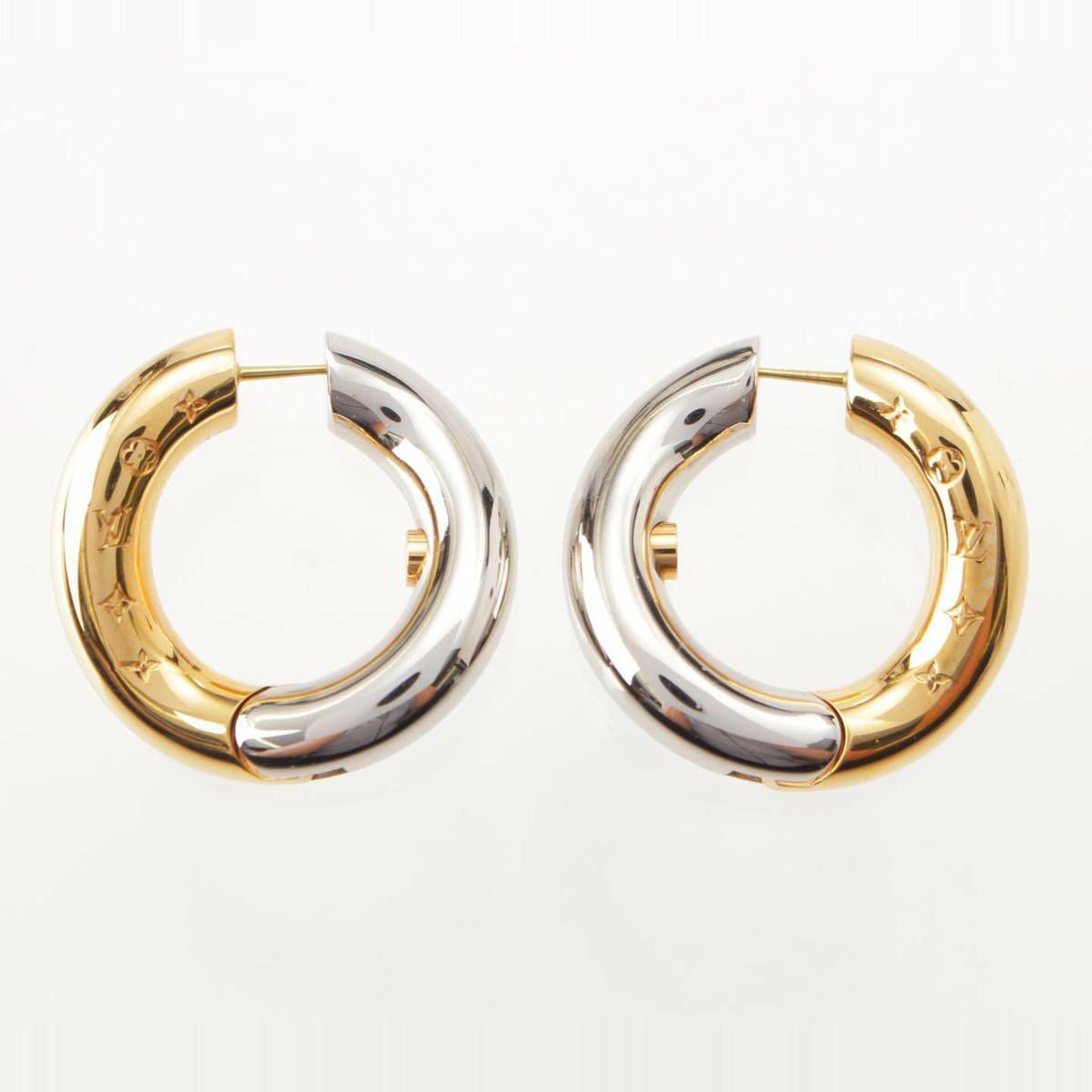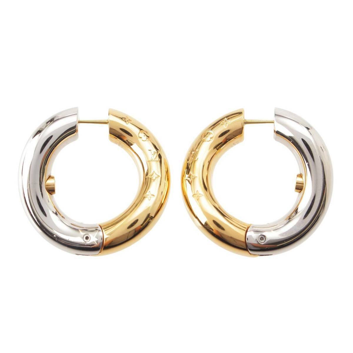 ルイヴィトン Louis Vuitton モノグラム ウェーブ フープ バイカラー ピアス MP3428 シルバー×ゴールド