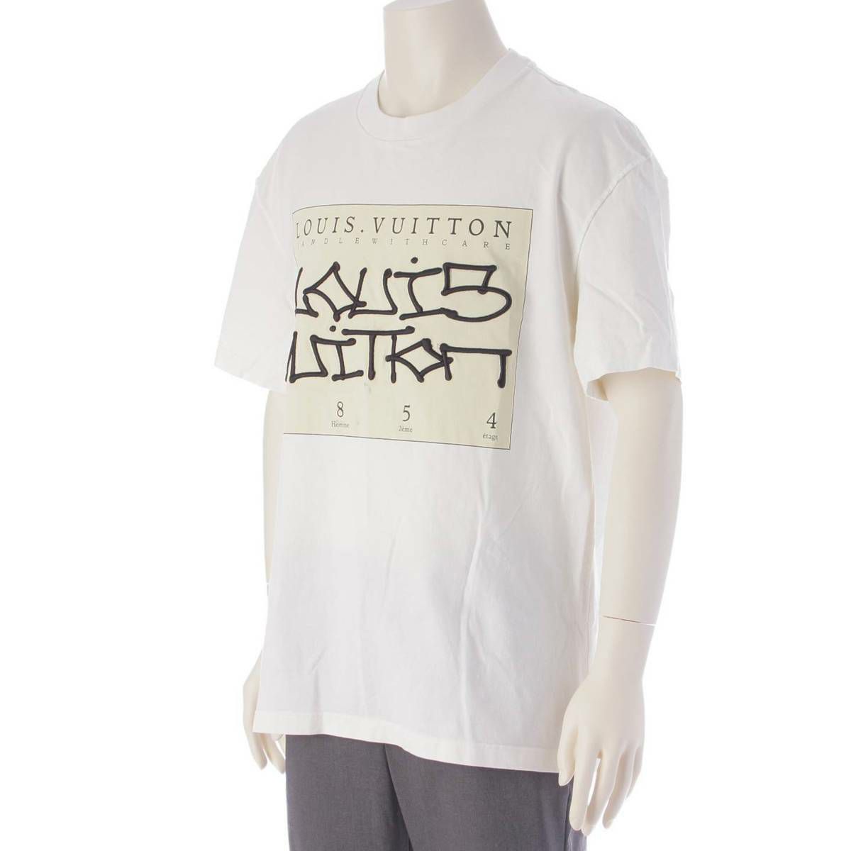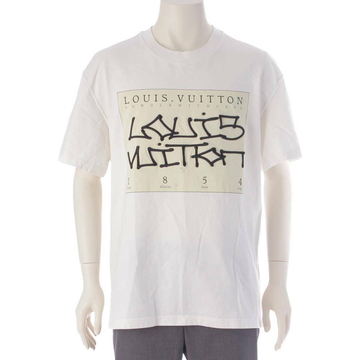 ルイヴィトン Louis Vuitton 22AW メンズ グラフィックロゴ 刺繍 クルーネック コットン Tシャツ ホワイト XL
