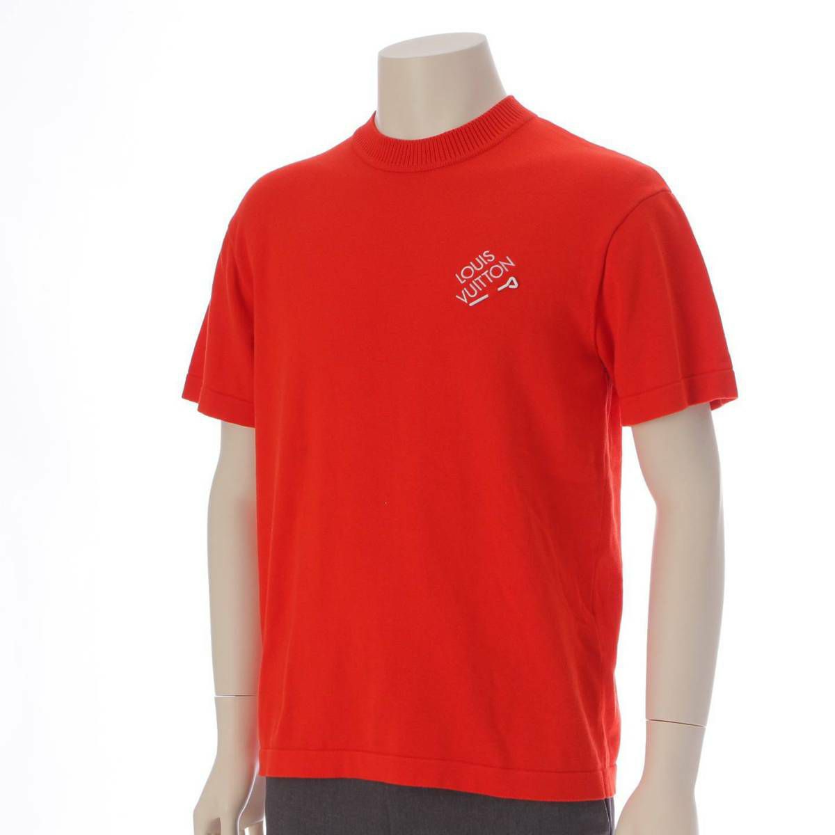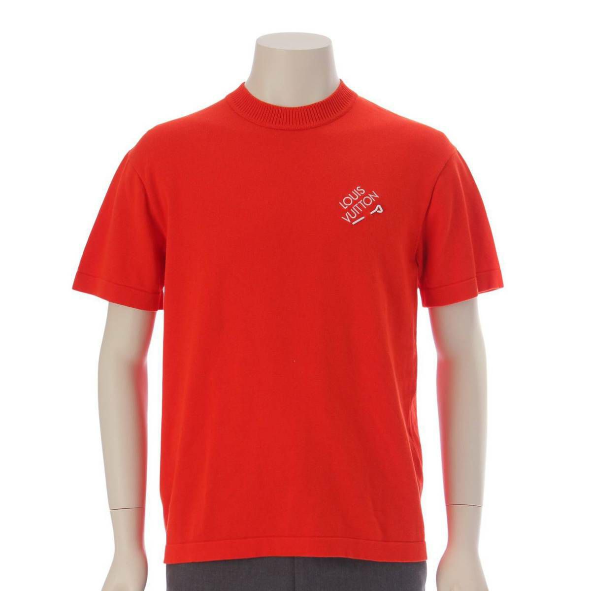ルイヴィトン 23AW メンズ エンブロイダリー ロゴ 半袖 ニット トップス オレンジ XS