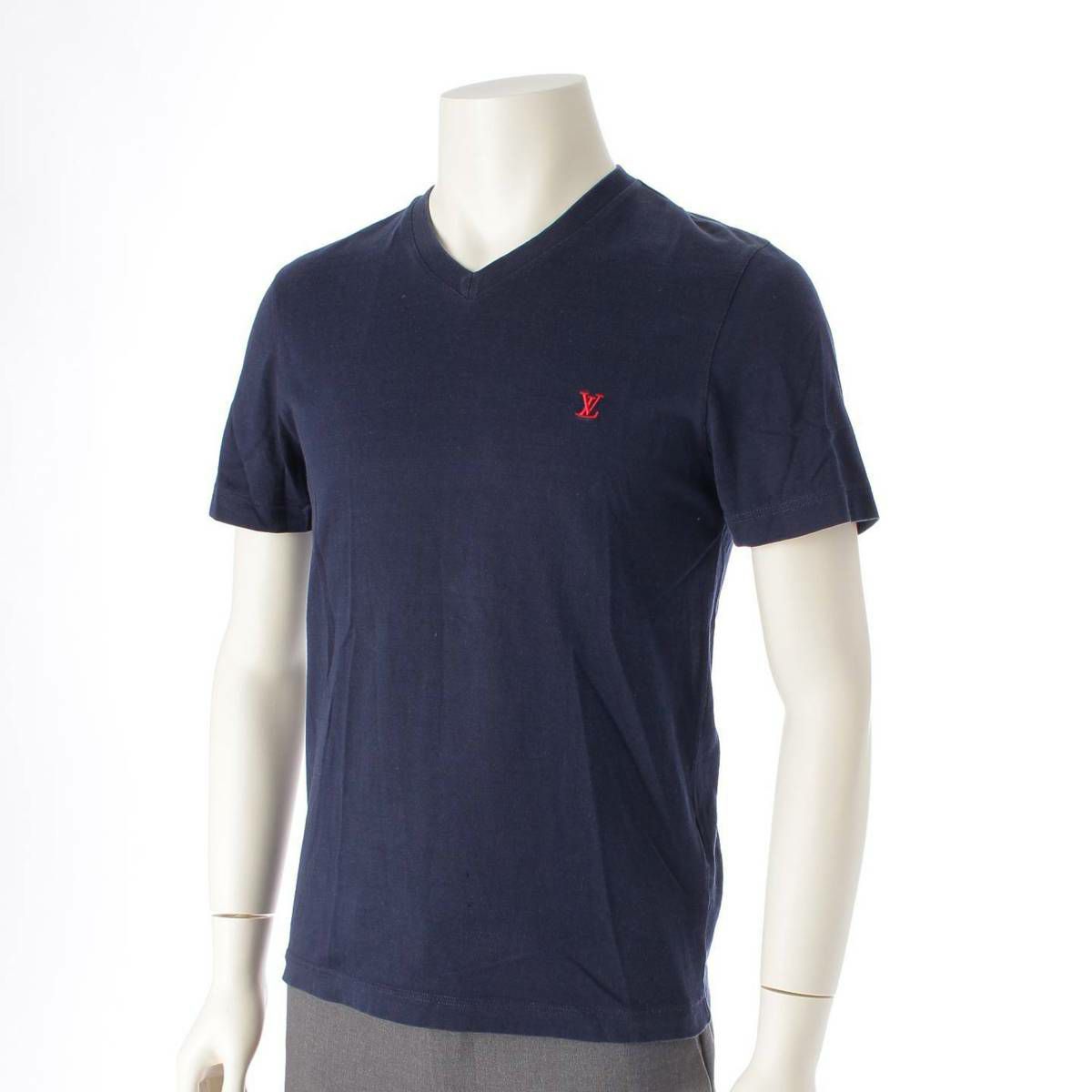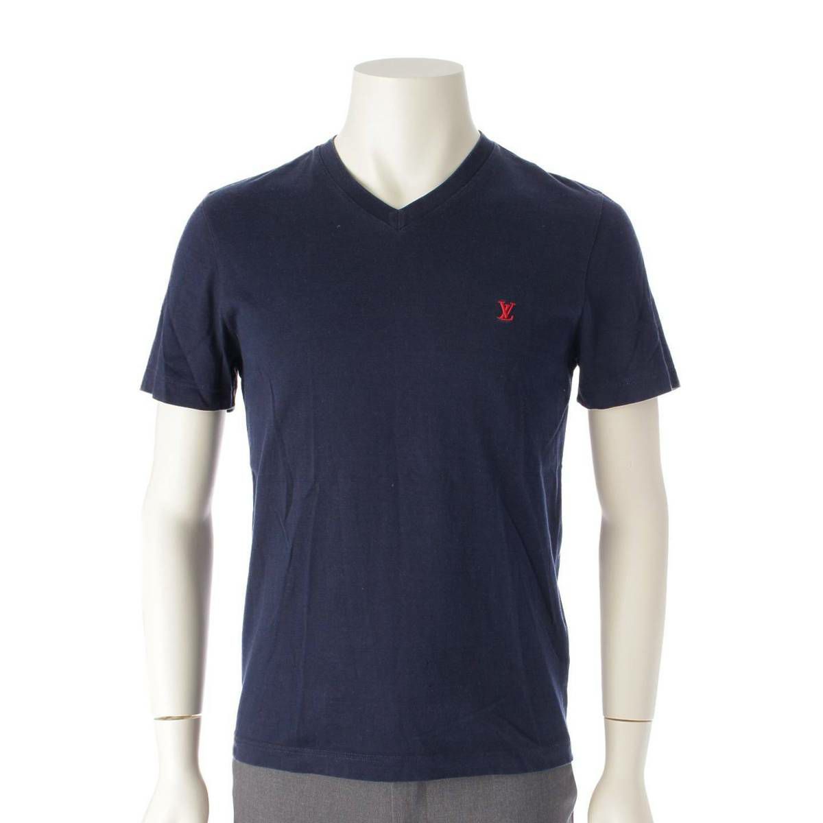 ルイヴィトン メンズ Vネック VLロゴ刺繍 半袖 Tシャツ カットソーRM142Q H6Y42WJC8 ネイビー XS
