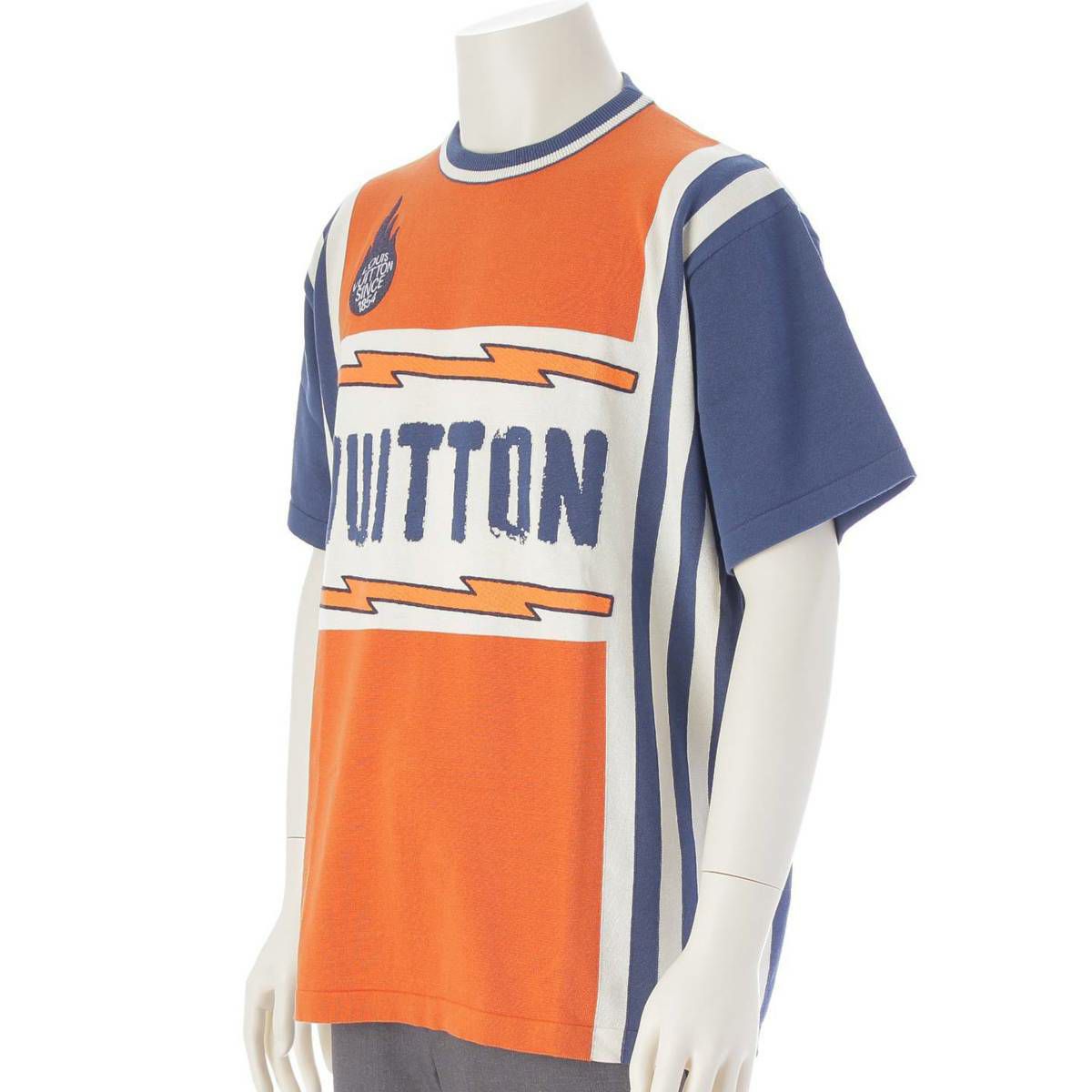 ルイヴィトン 24SS メンズ ヴィンテージロゴ ストライプ 半袖 ニット Tシャツ 1AFANR オレンジ L