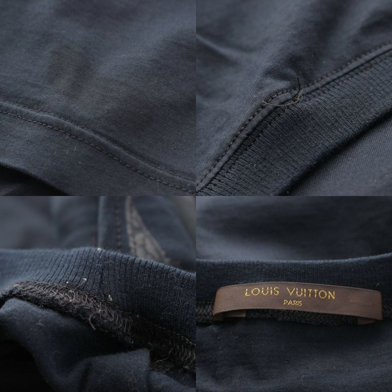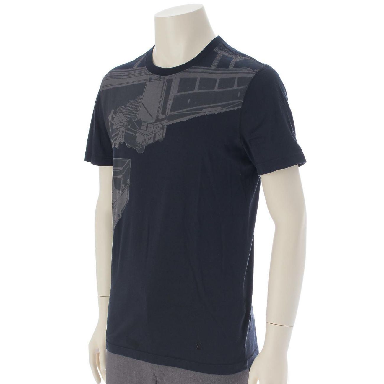 ルイヴィトン メンズ プリント クルーネック コットン Tシャツ トランク ネイビー S