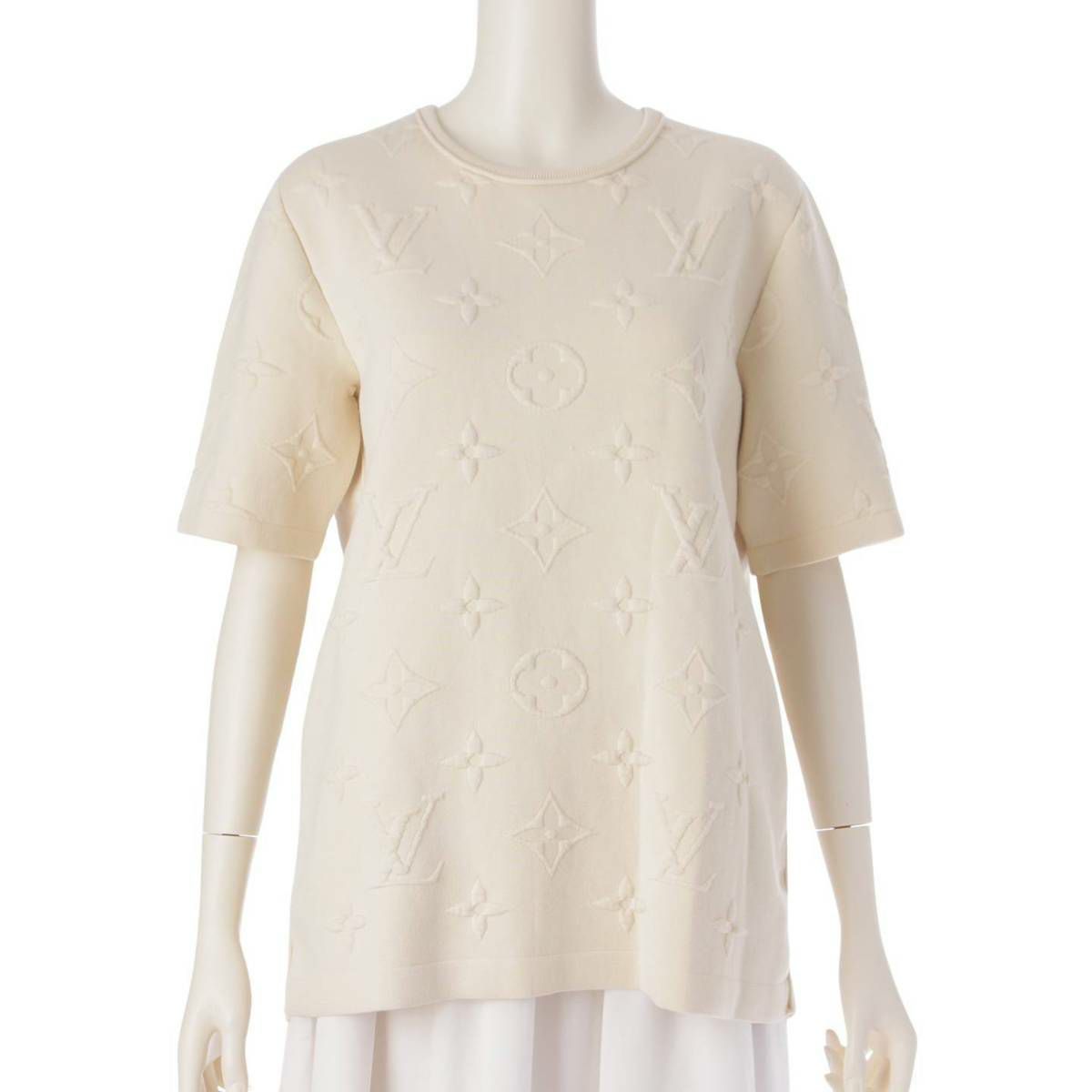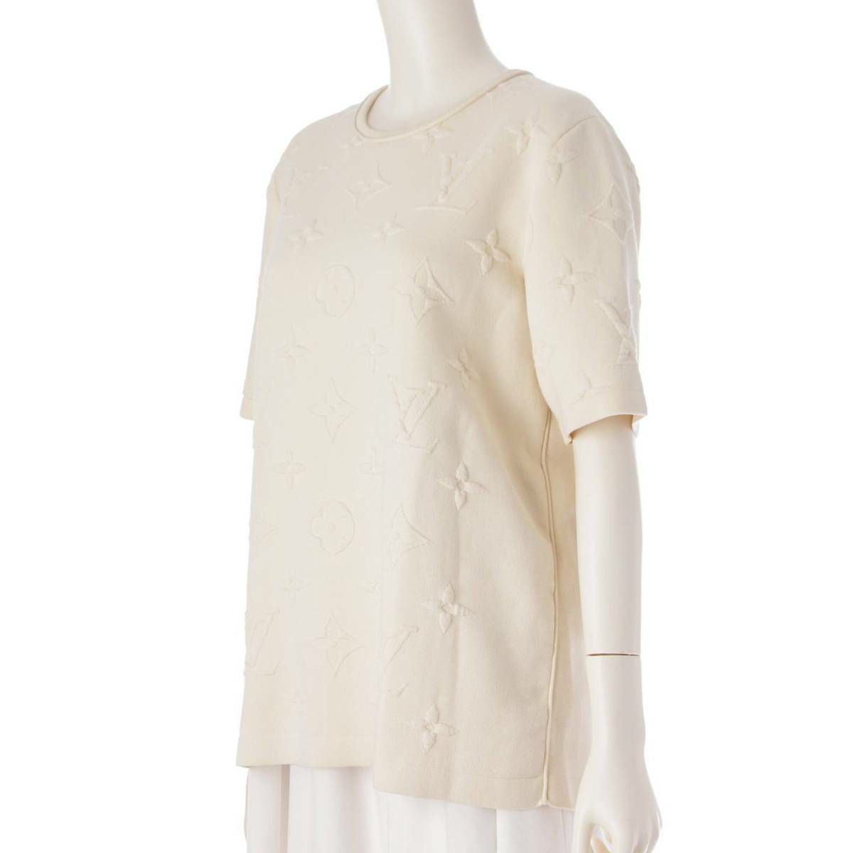 ルイヴィトン Louis Vuitton 23SS 3Dモノグラム エンボス加工 厚手 Tシャツ カットソー トップス オフホワイト L