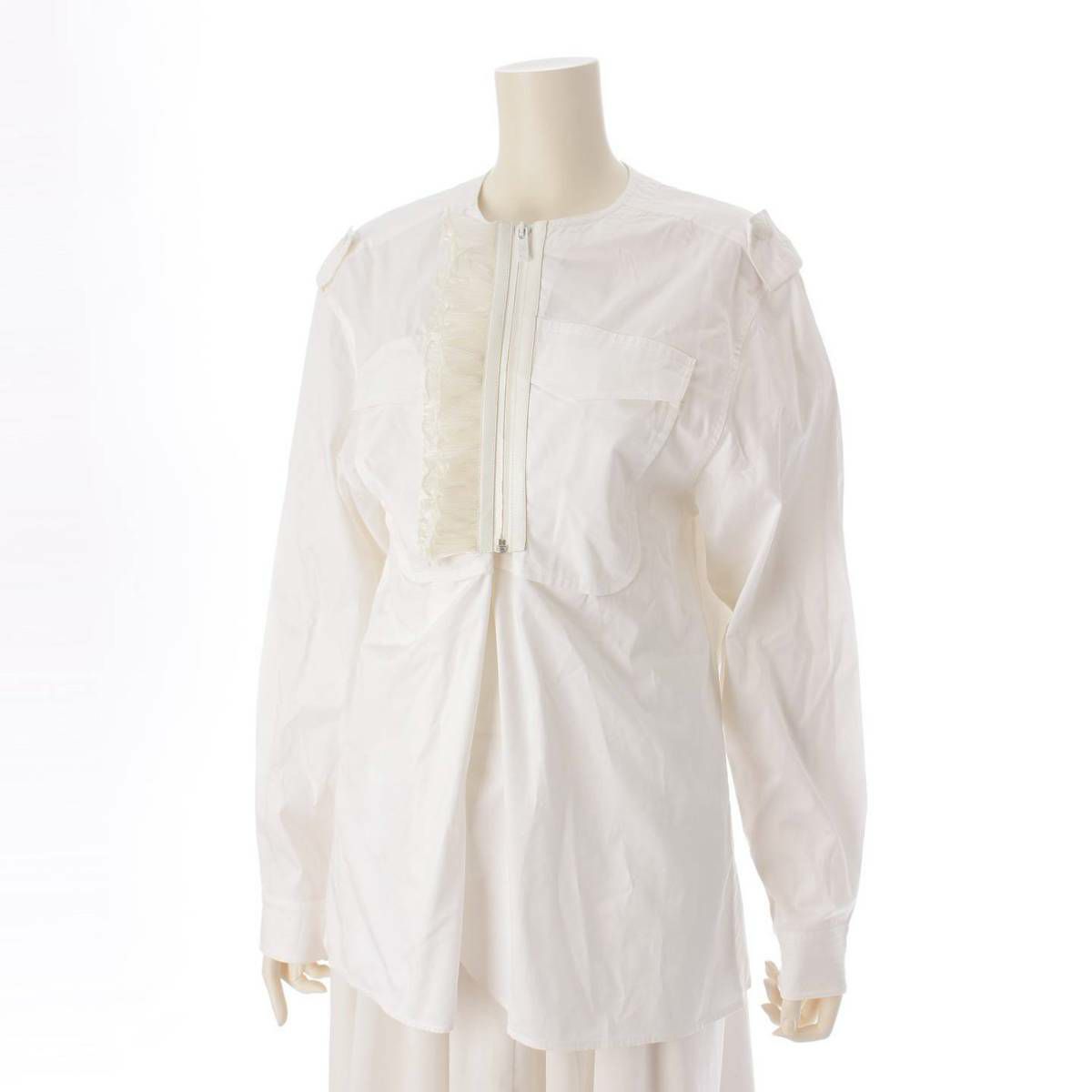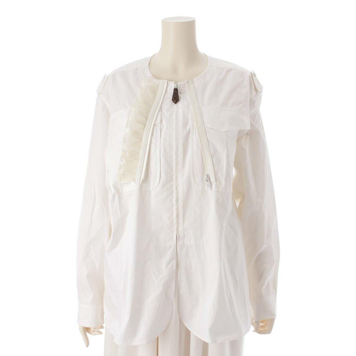 ルイヴィトン Louis Vuitton フリル モノグラムジップ コットン シャツ ジャケット トップス ホワイト 38