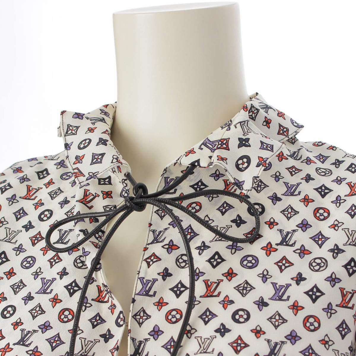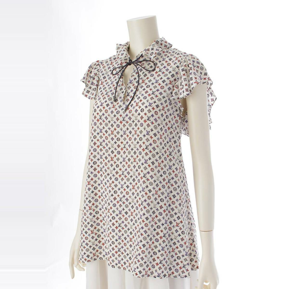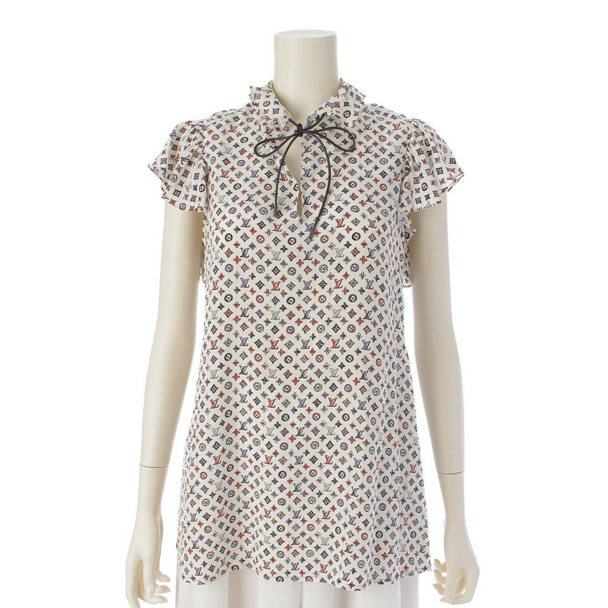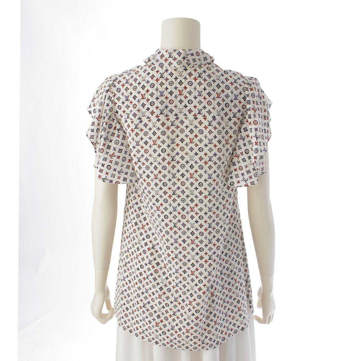 ルイヴィトン Louis Vuitton モノグラム フリルスリーブ スキッパー トップス ブラウス シャツ マルチカラー 34