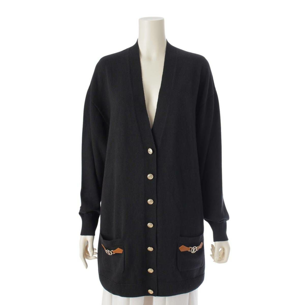 ルイヴィトン 24年 ドーフィーヌ カシミヤ×コットン ニット タブカーディガン 1AFZBG ブラック S