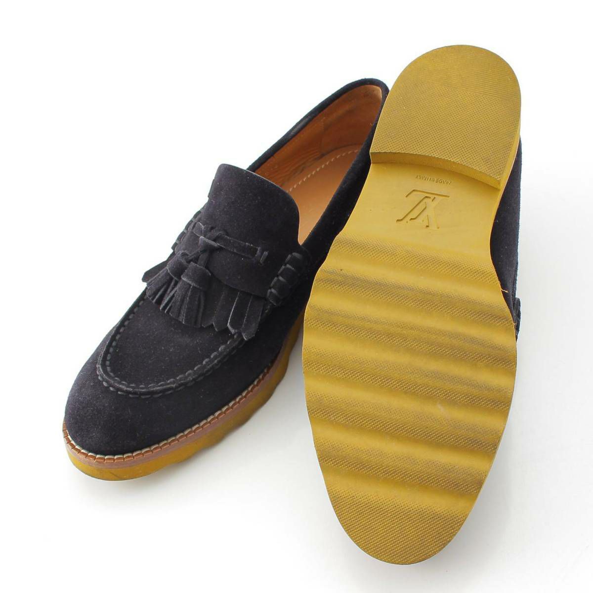 ルイヴィトン Louis Vuitton メンズ タッセル LVロゴ スエード ローファー スリッポン シューズ ブラック