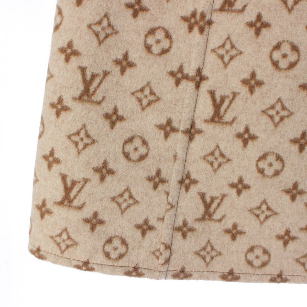ルイヴィトン 22SS モノグラム ロゴボタン ウール ミニ 台形 スカート ボトムス ベージュ 36