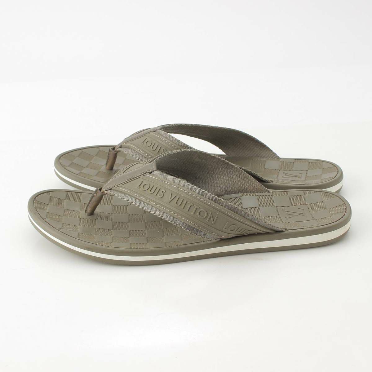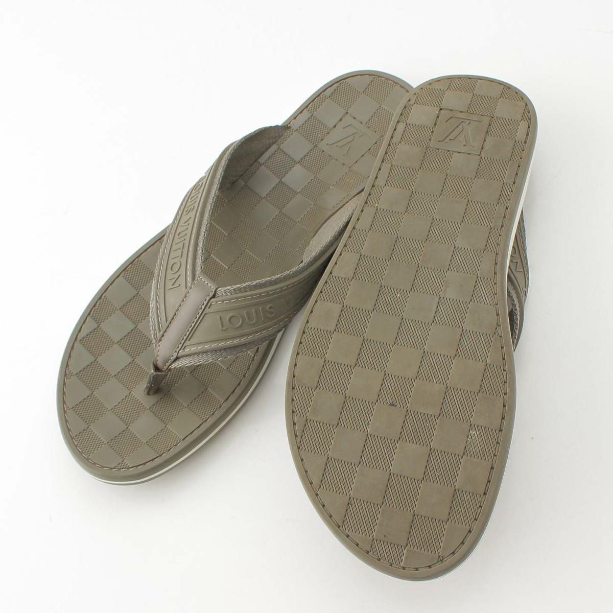 ルイヴィトン Louis Vuitton メンズ ダミエ ラバー ロゴ フラット ビーチサンダル トング カーキ 8
