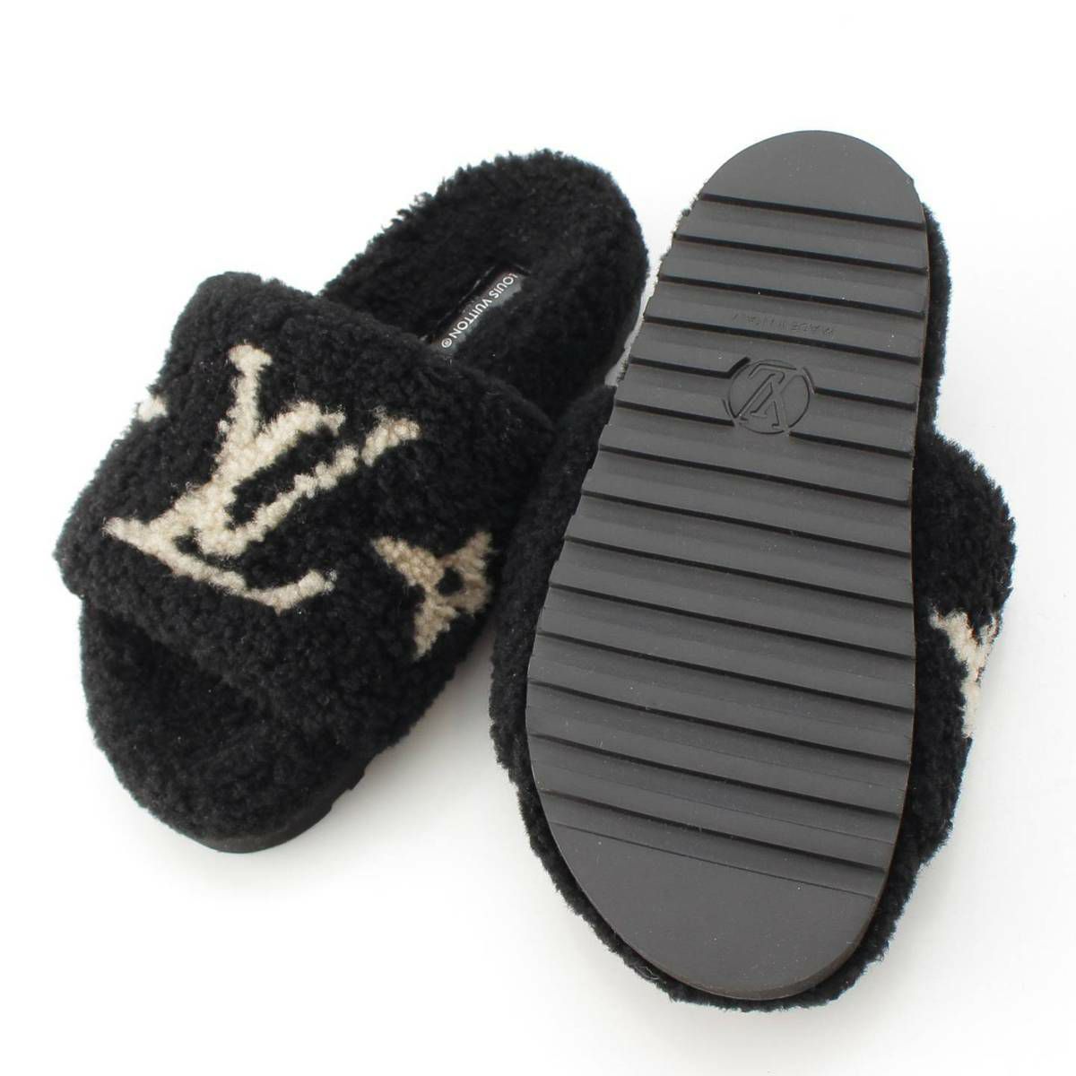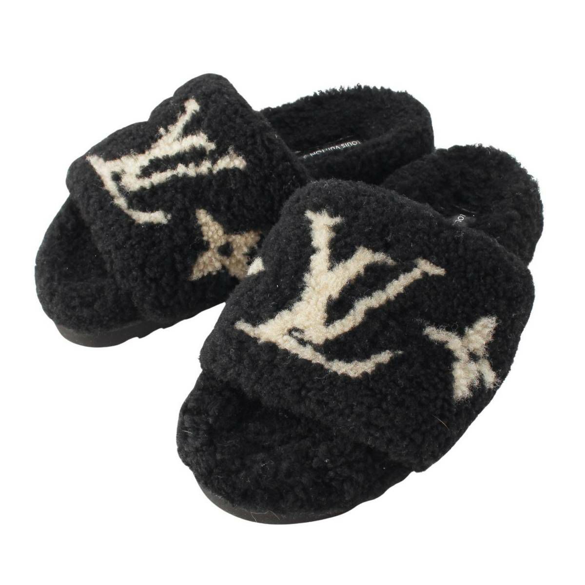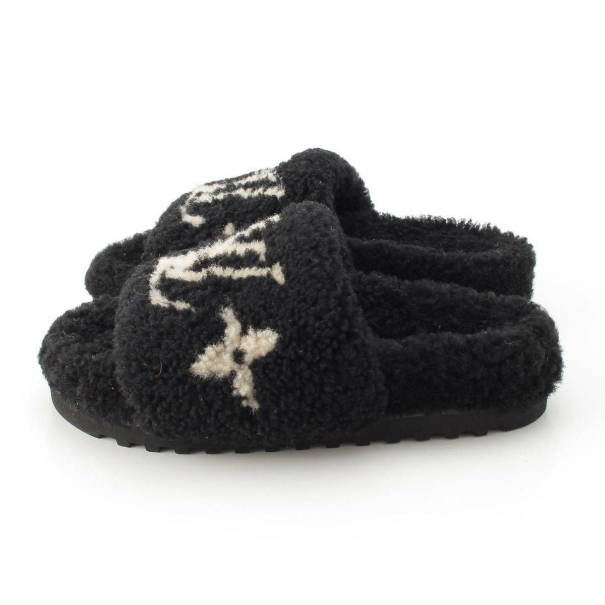 ルイヴィトン Louis Vuitton パセオライン LVロゴ ボア フラット サンダル ブラック 36