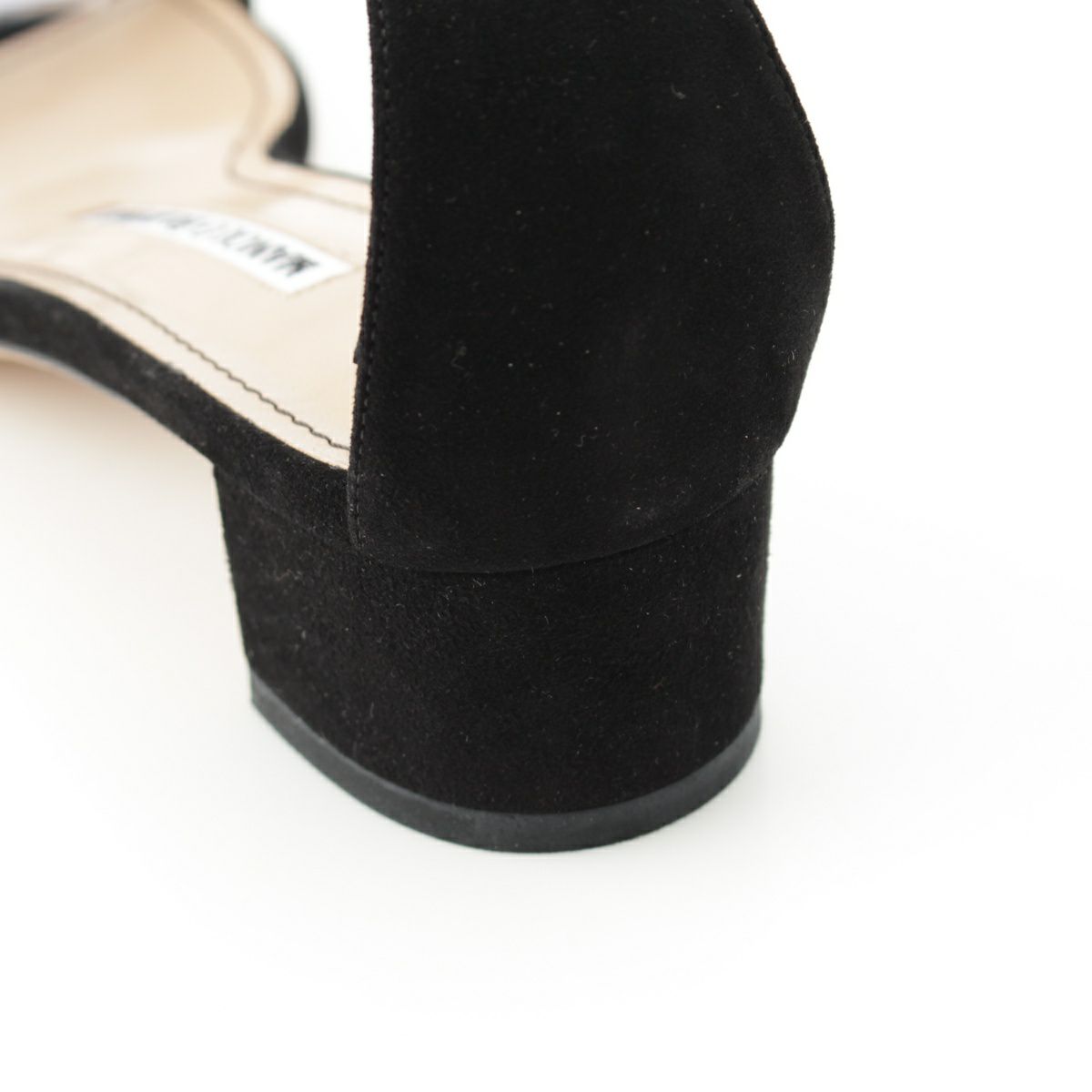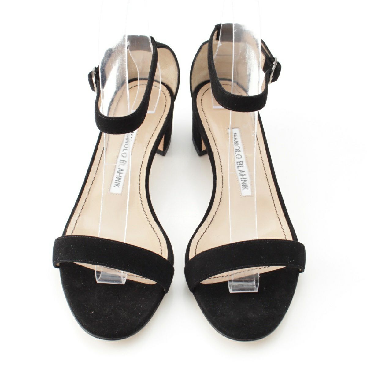 マノロブラニク Chaflahi スエード ストラップ ヒール サンダル 99WCHASUE030 ブラック シルバー金具 37