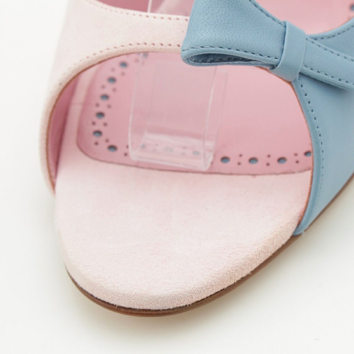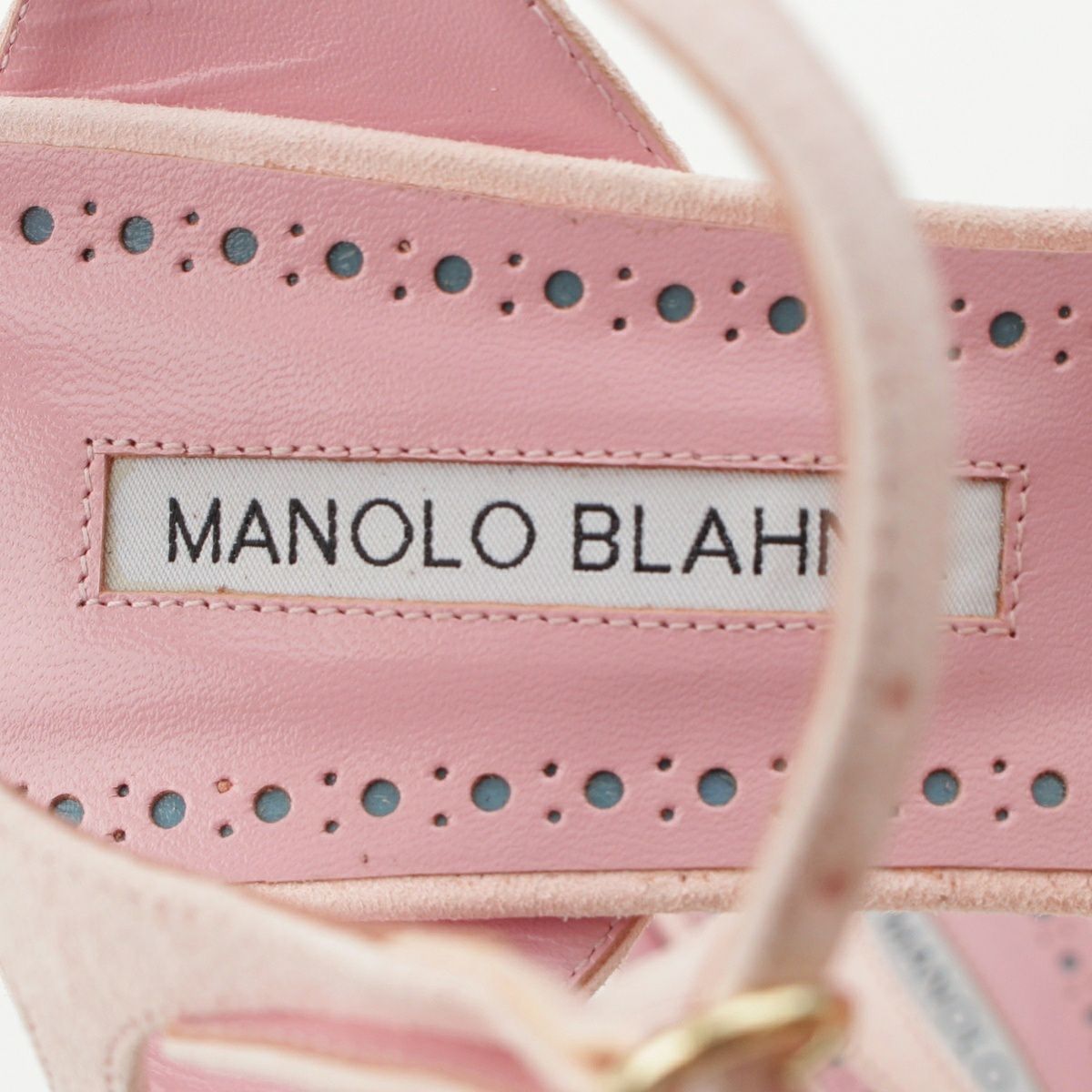 マノロブラニク リボン オープントゥ ヒール サンダル ピンク ブルー 38