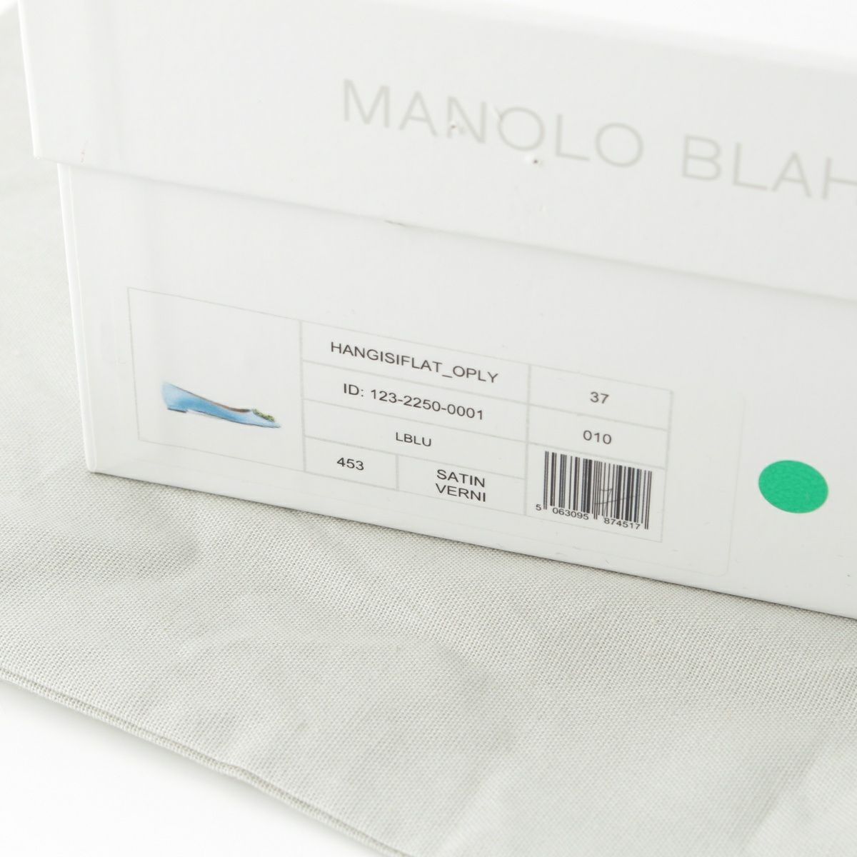 マノロブラニク ハンギシ サテン ビジュー フラット パンプス シューズ ライトブルー 37