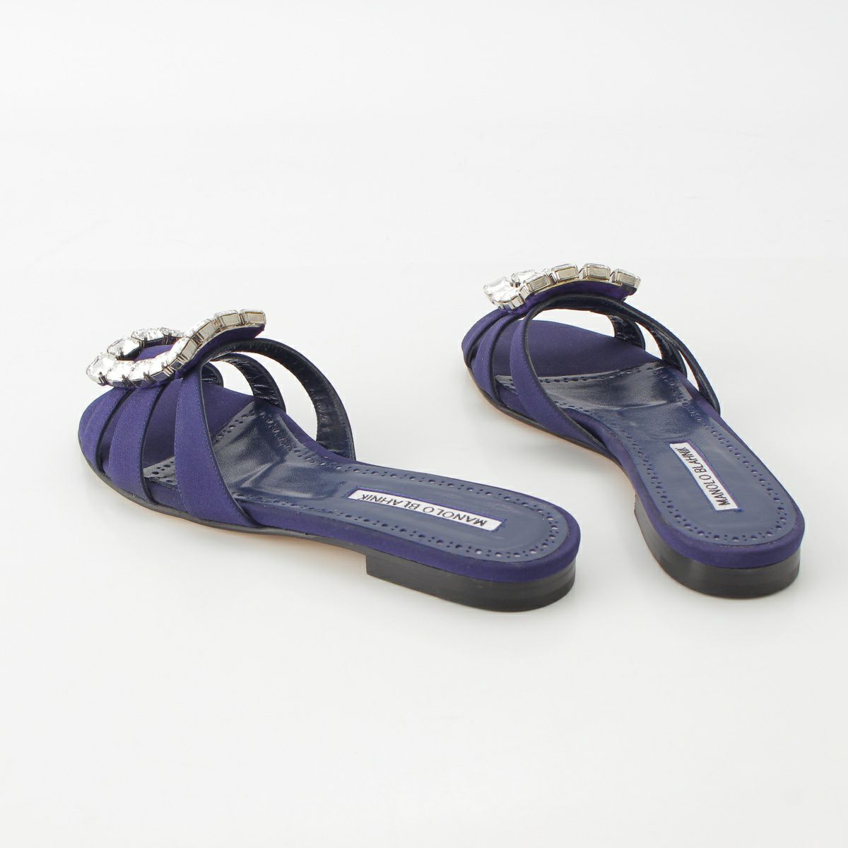 マノロブラニク ILUNAFLAT ビジューバックル フラット サンダル ミュール 120-0936-0004 ネイビー 36