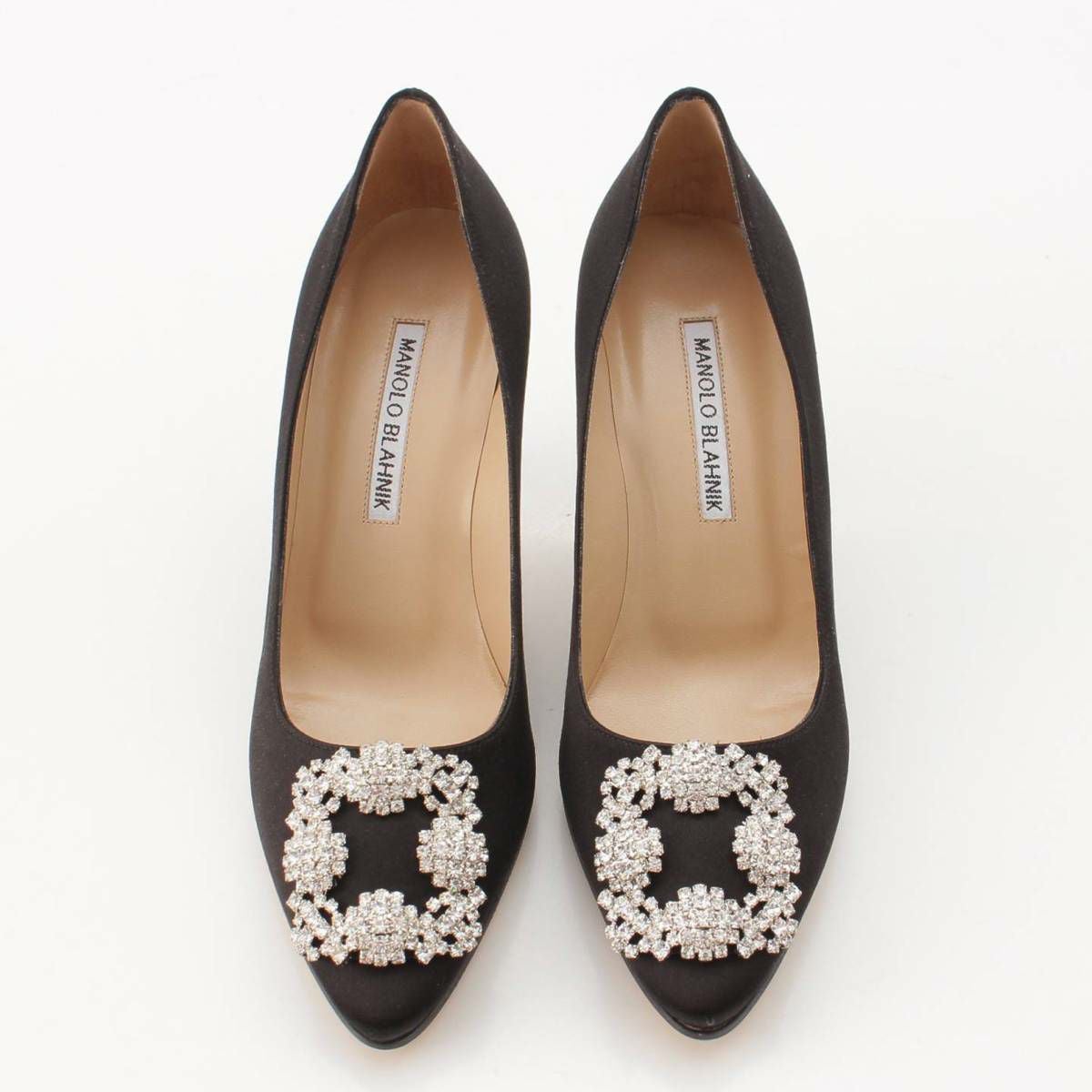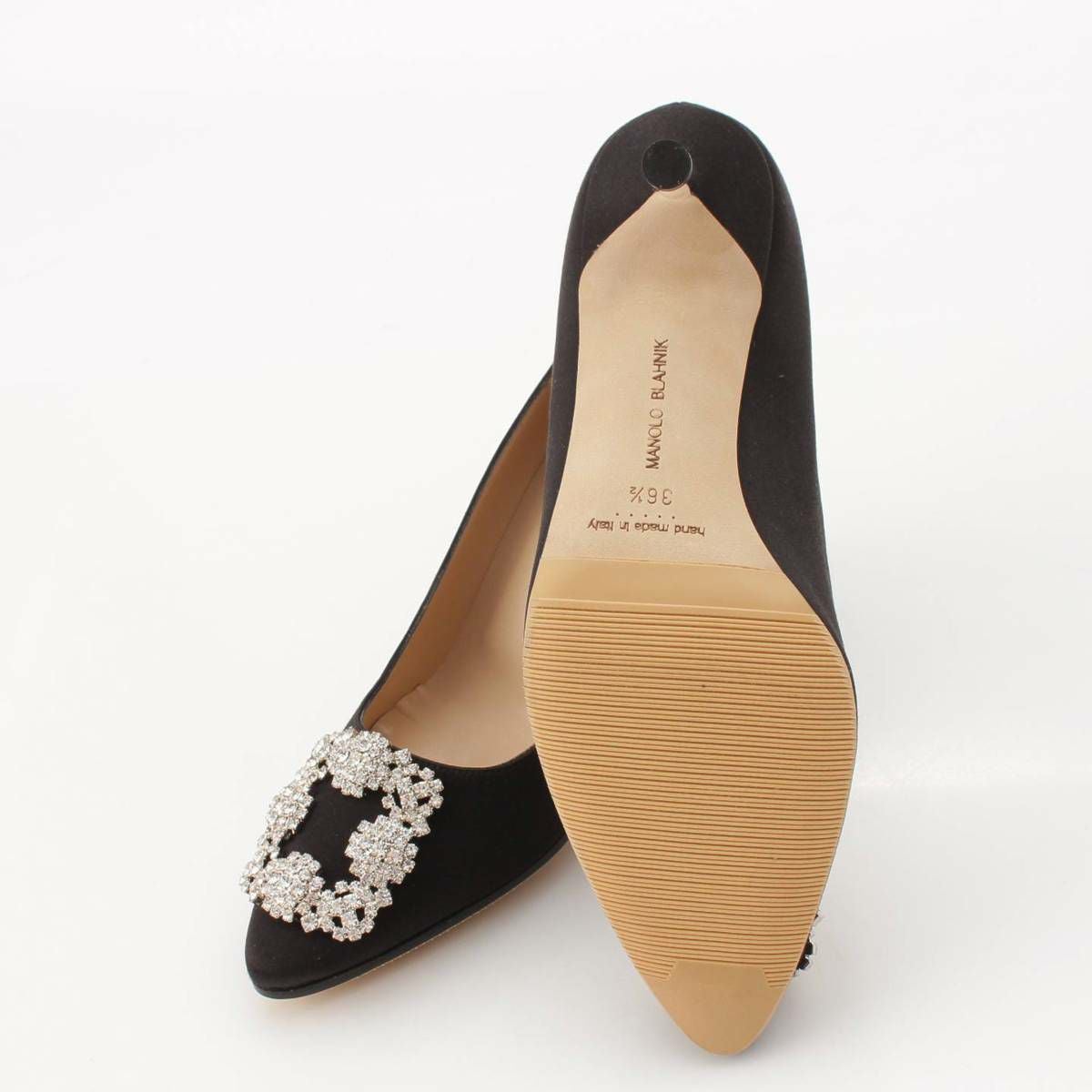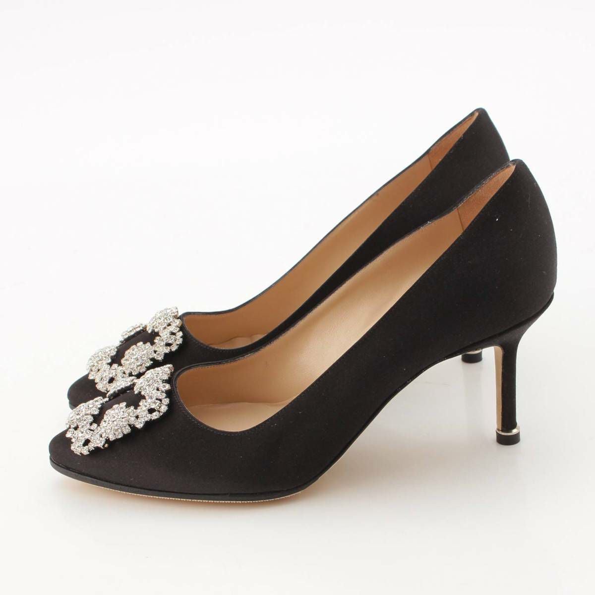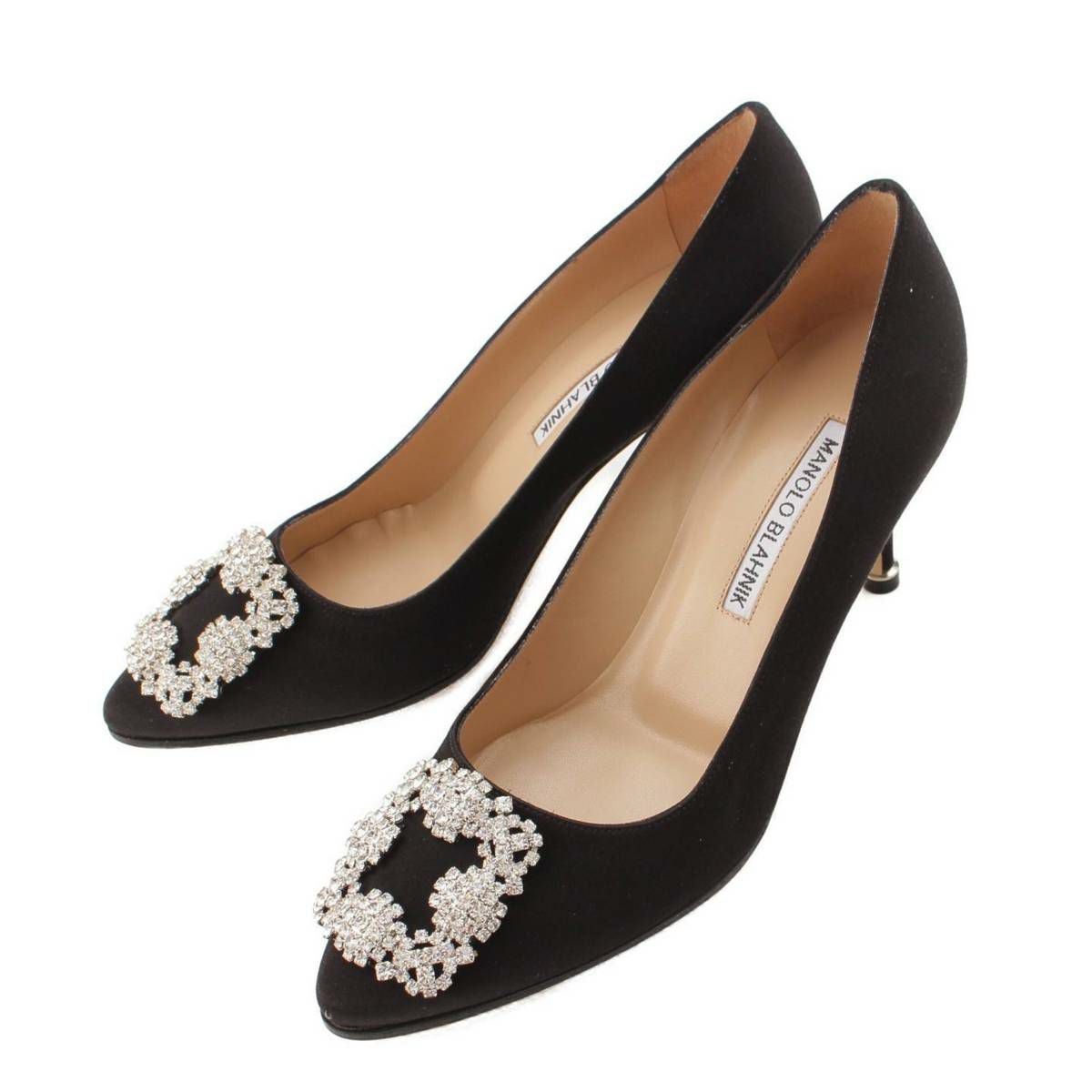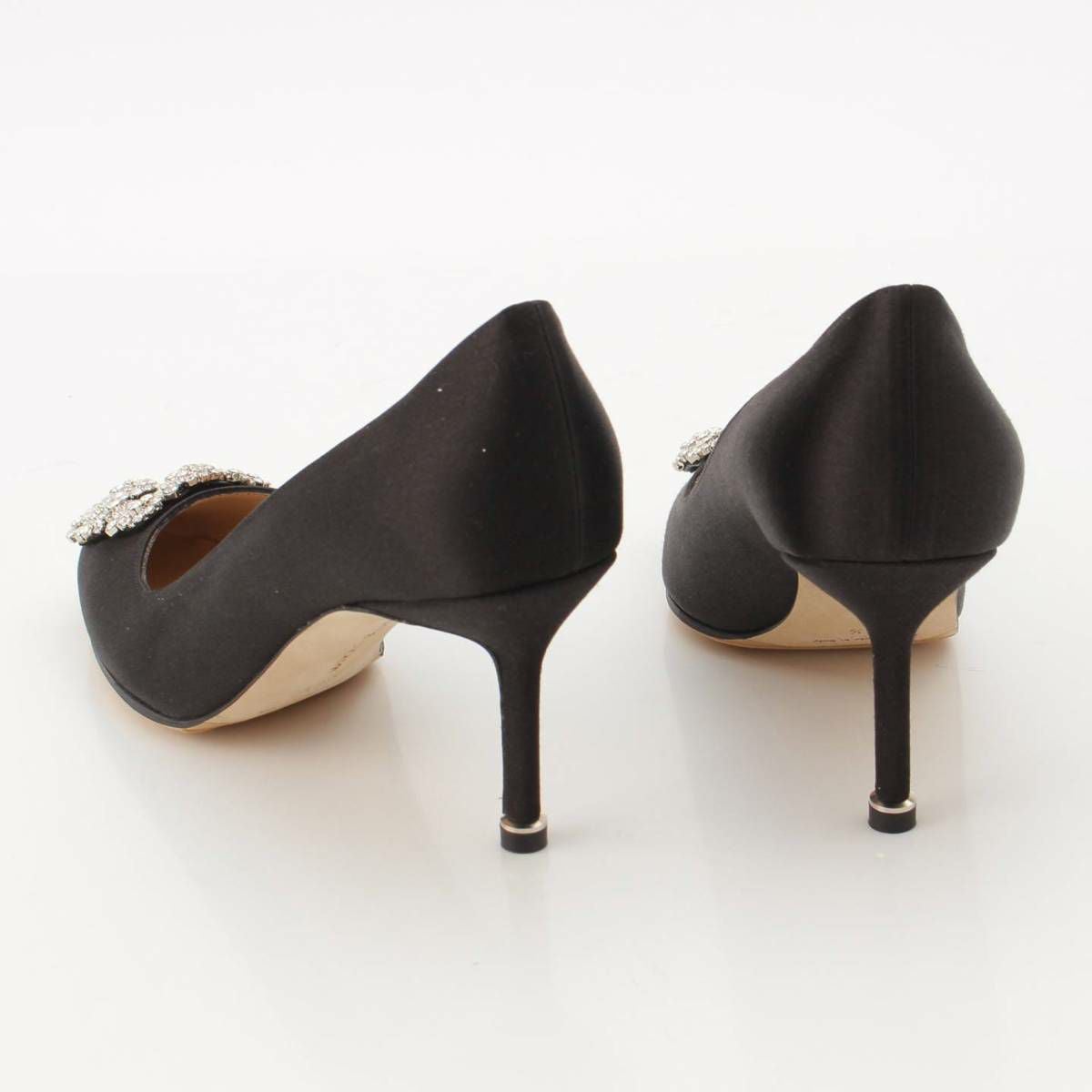 マノロブラニク Manolo Blahnik HANGISI ハンギシ サテン ビジュー パンプス ヒール ブラック 36 1/2