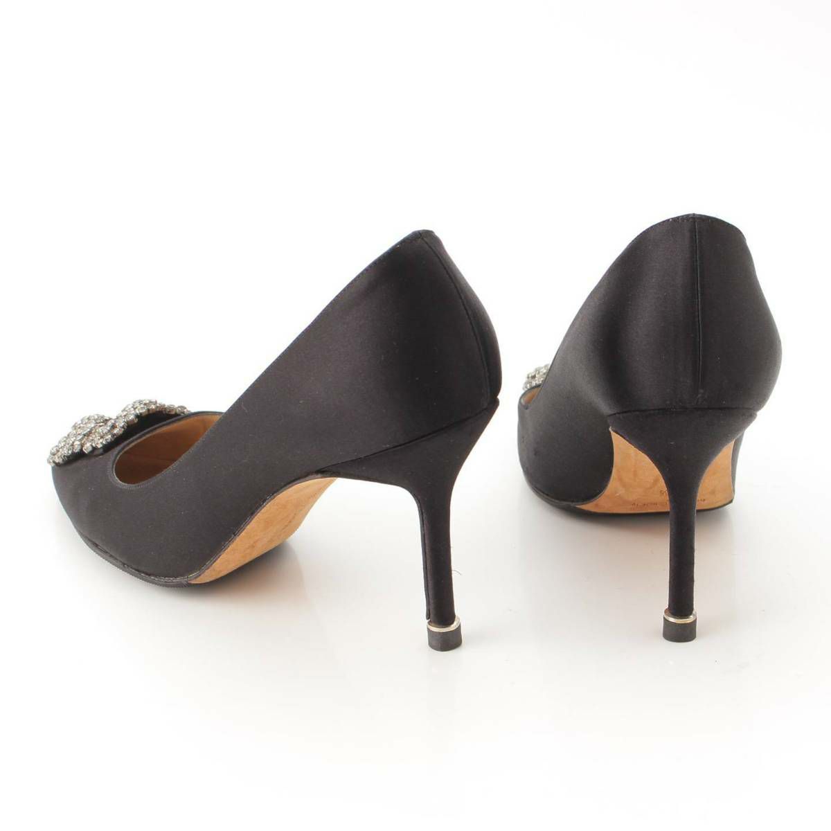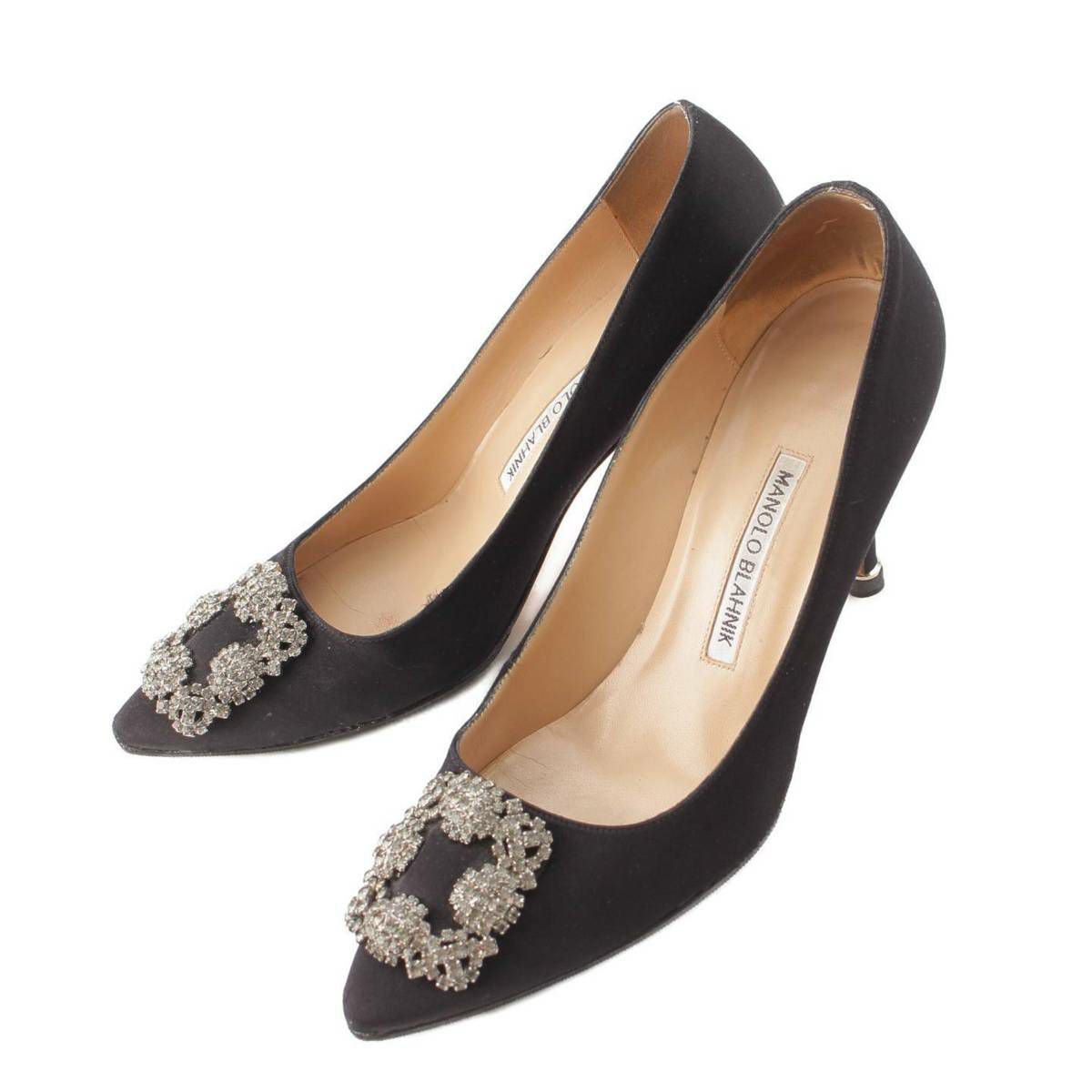 マノロブラニク Manolo Blahnik ハンギシ サテン ビジューバックル ヒール パンプス ブラック 37 1/2