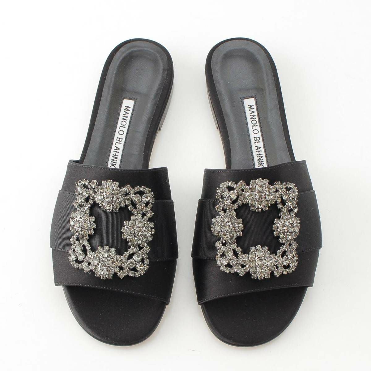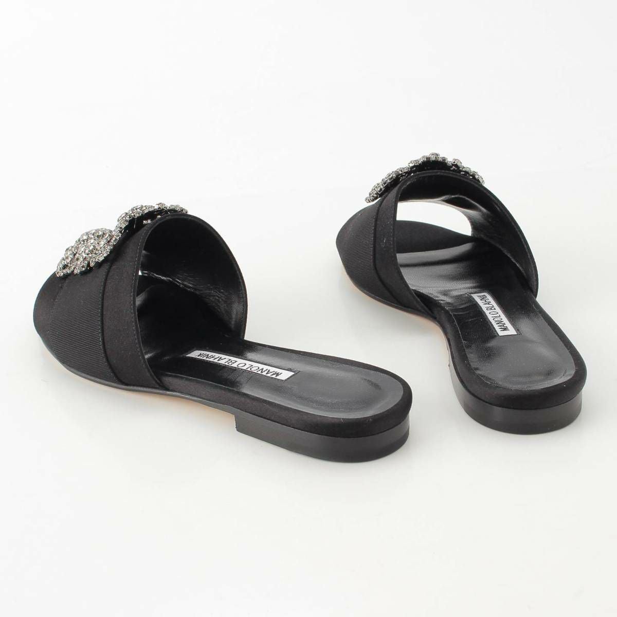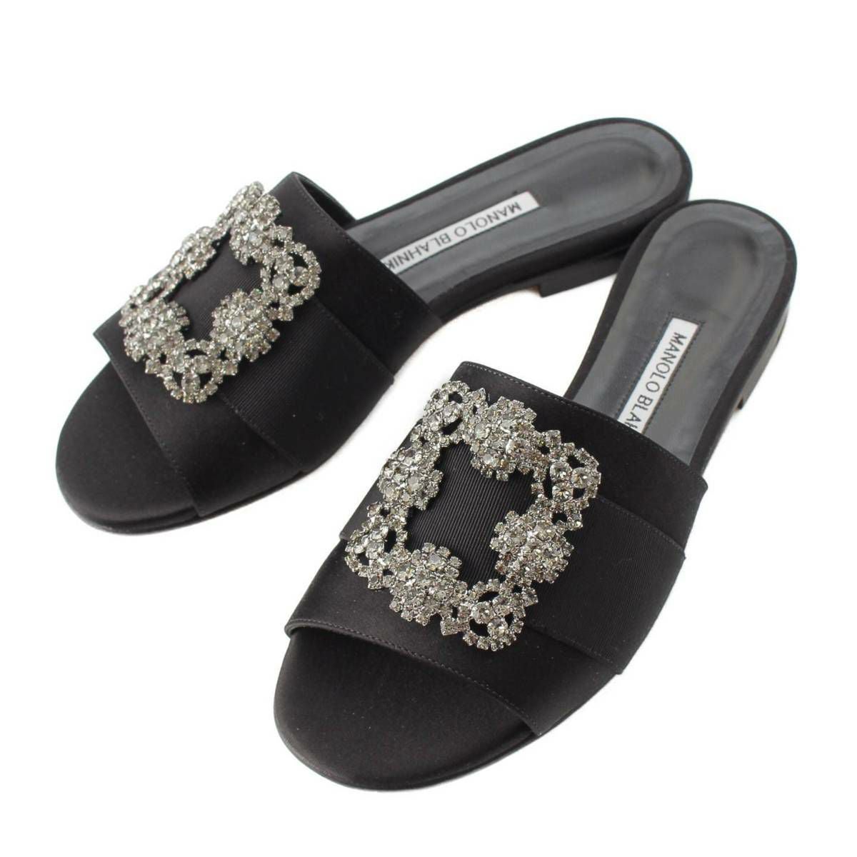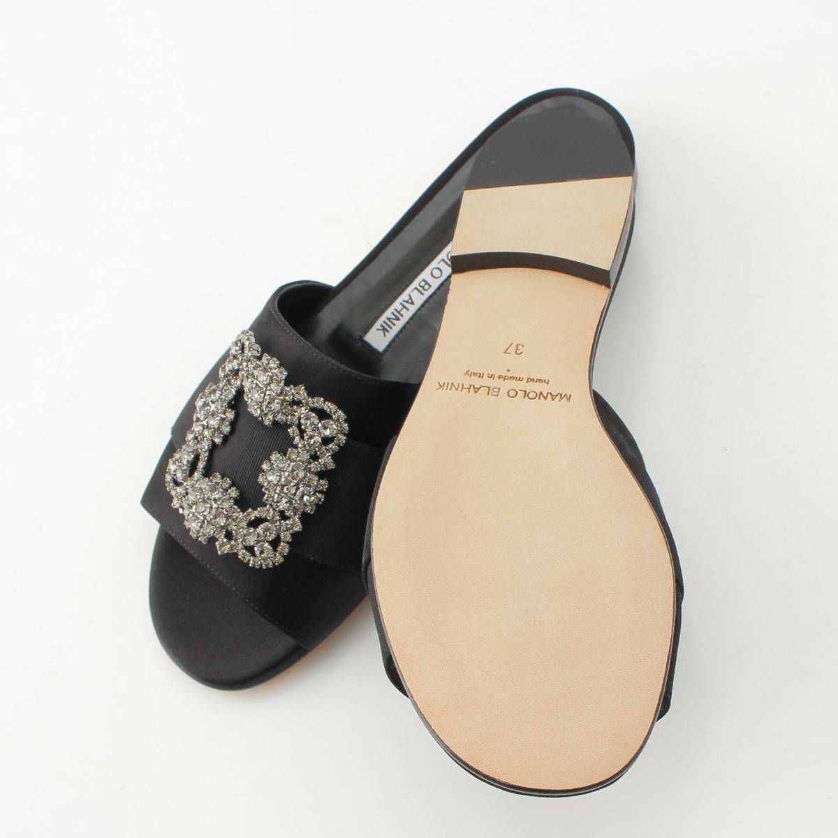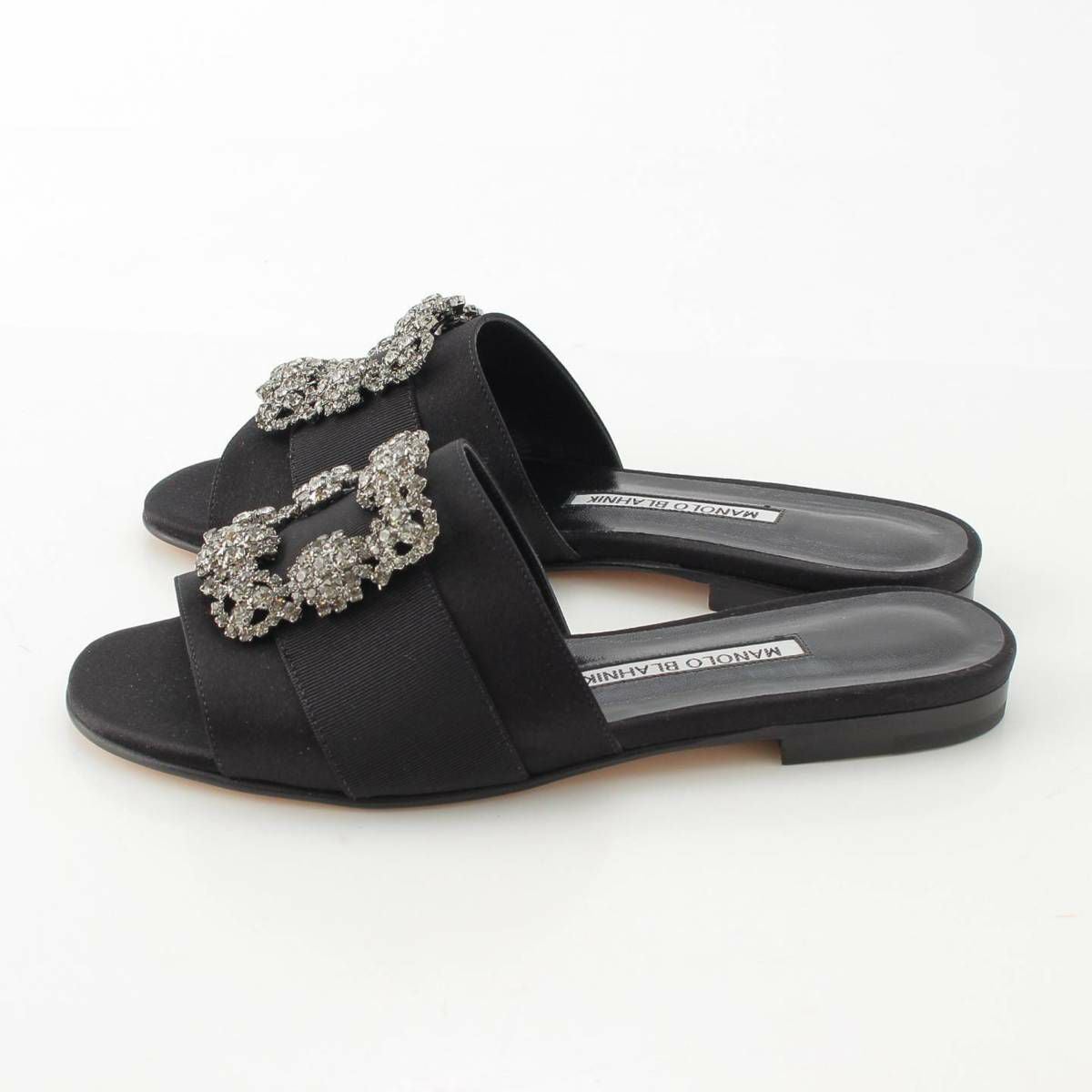 マノロブラニク Manolo Blahnik Martamod ビジュー付き サテン フラットサンダル サンダル シューズ ブラック 37