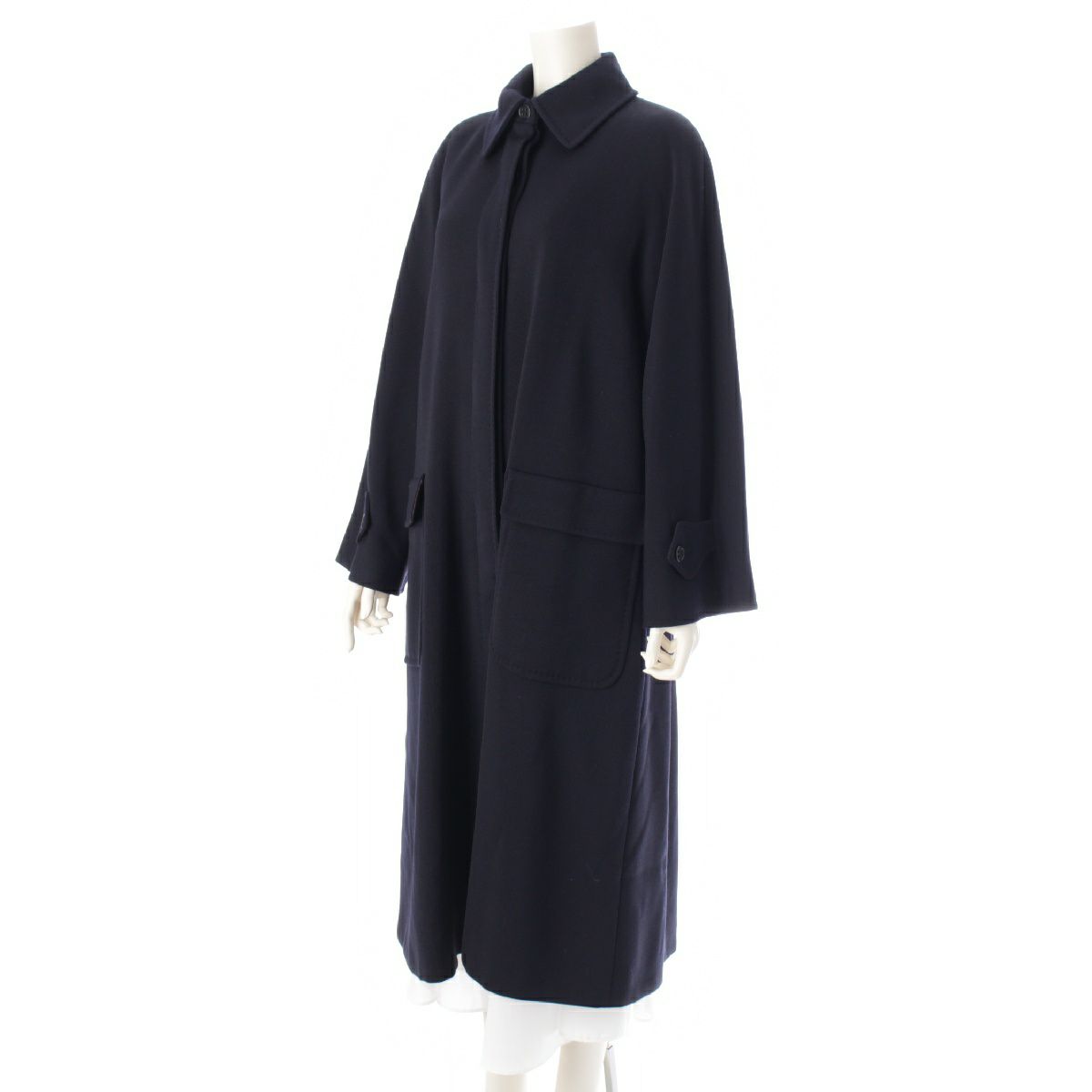 マックスマーラ ウール 白タグ ロング ステンカラーコート アウター ネイビー 40