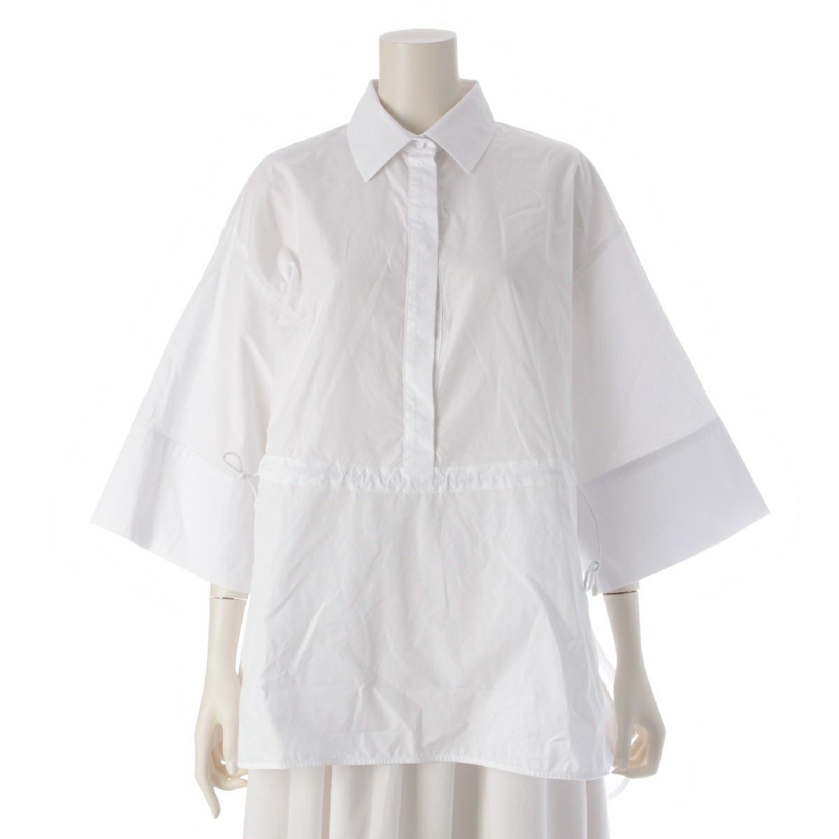 マックスマーラ 24SS コットン MARCH ピュア ルーズ ドローストリング ブラウス シャツ トップス ホワイト 40