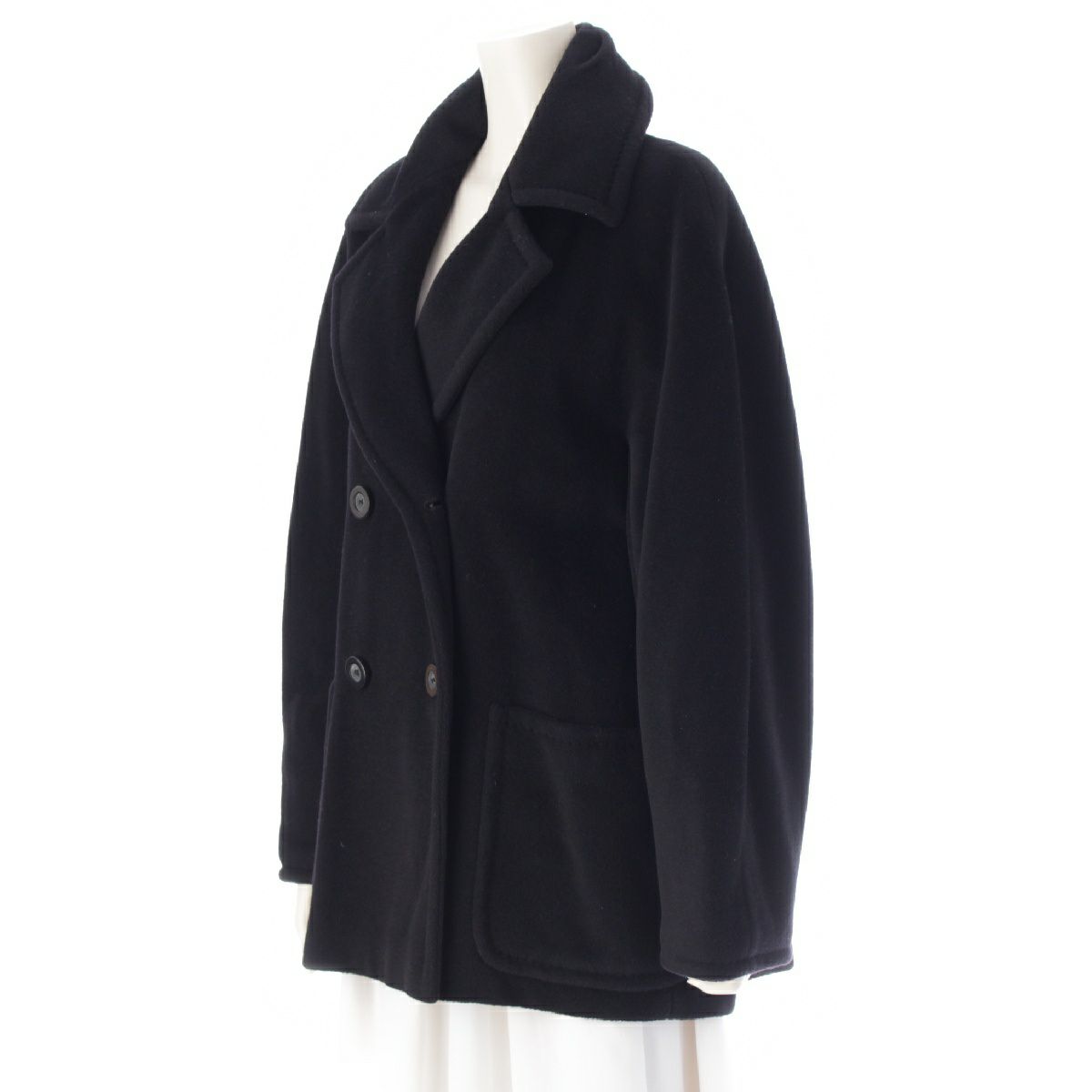 マックスマーラ ウール カシミヤ 白タグ ダブル ダッフルコート ジャケット ブラック 38