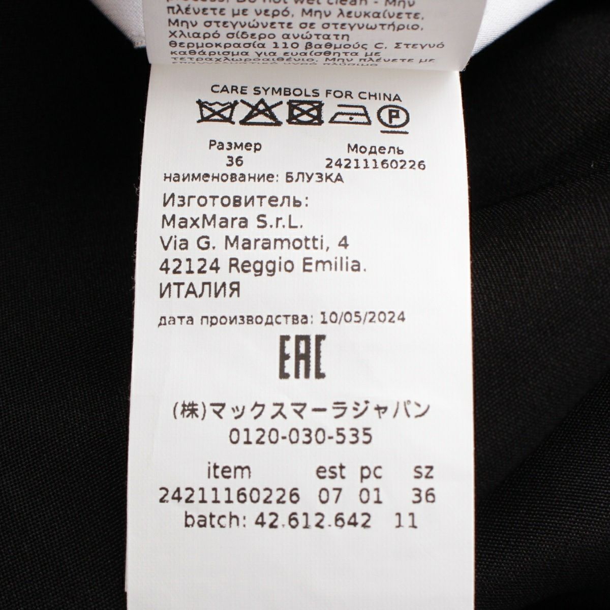 マックスマーラ 24年 ZANZERO シルク 長袖シャツ ブラウス 2421366252 ブラック 36
