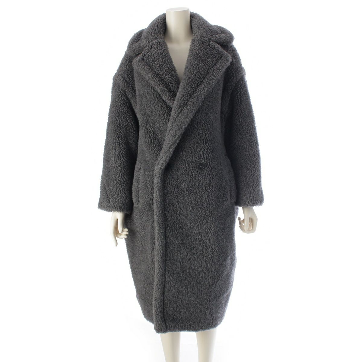 マックスマーラ テディベア ウール アルパカ シルク ボア アイコン コート アウター グレー S