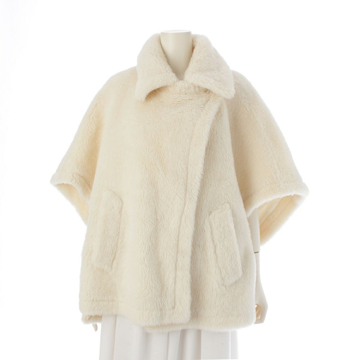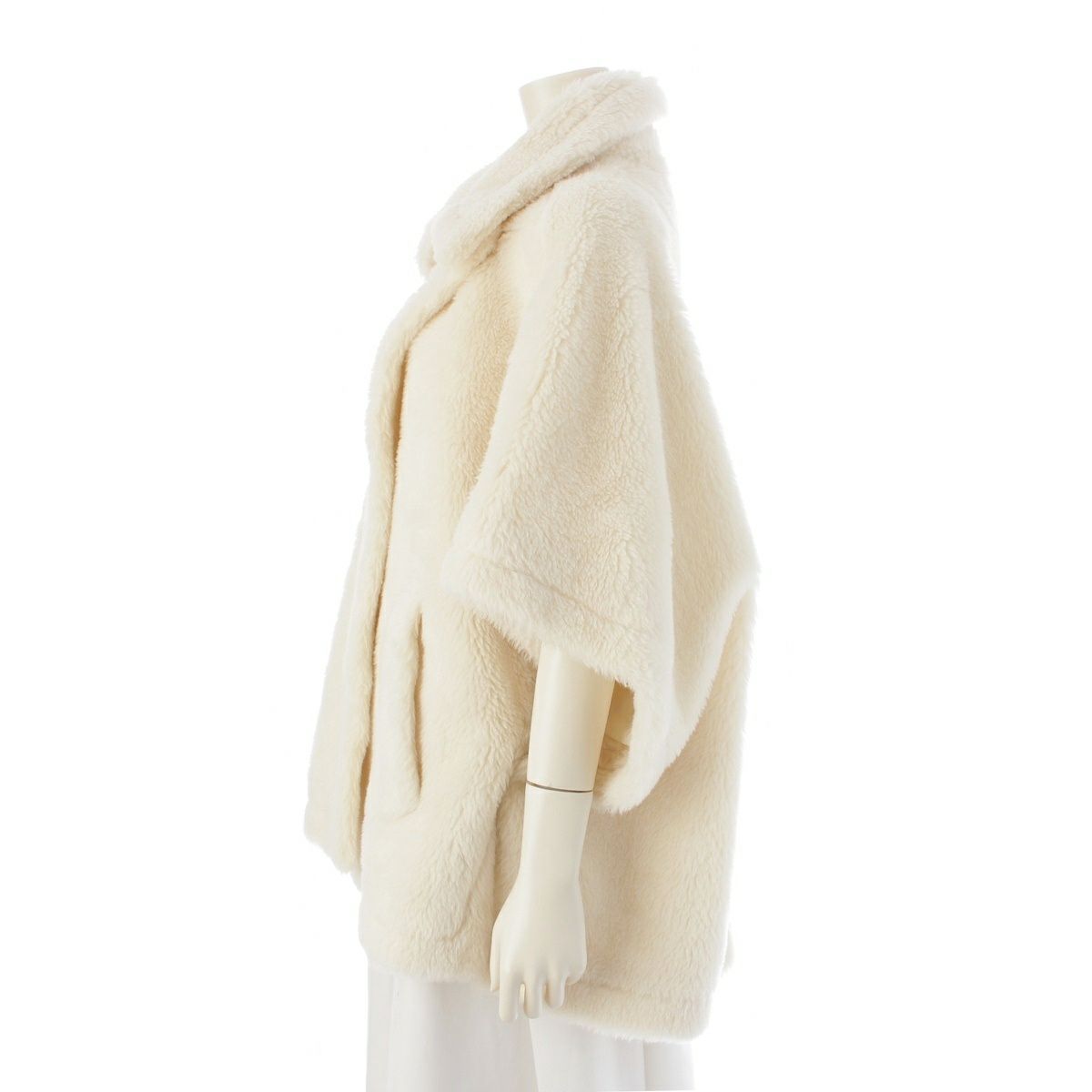 マックスマーラ 23AW アルパカ×ウール×シルク テディベア ポンチョ コート アウター 23473619336 ホワイト