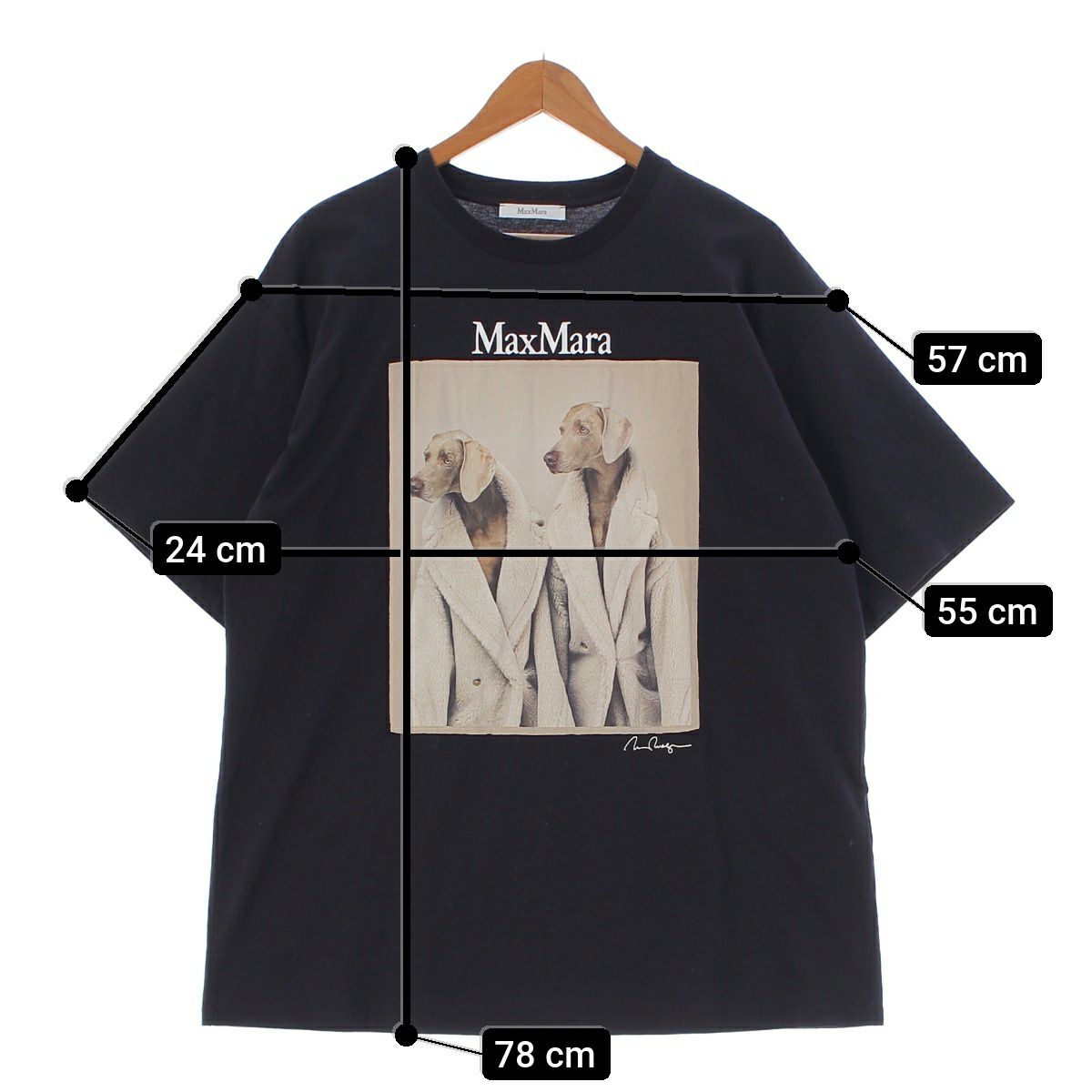 マックスマーラ TACCO ウェグマンプリント ドッグ 半袖Tシャツ カットソー トップス 2319460139 ブラック M