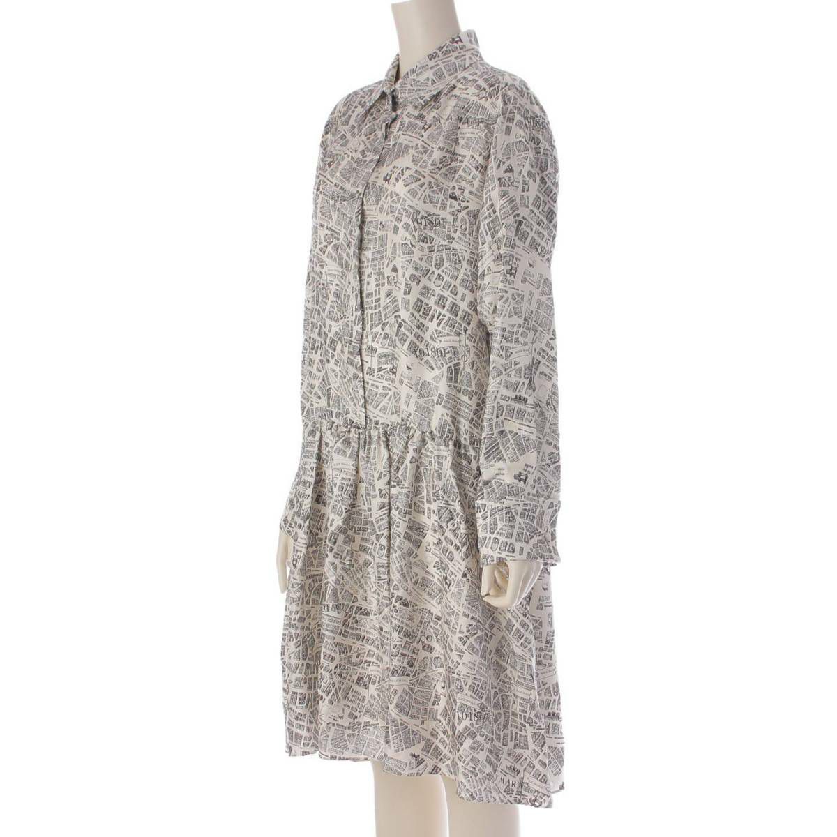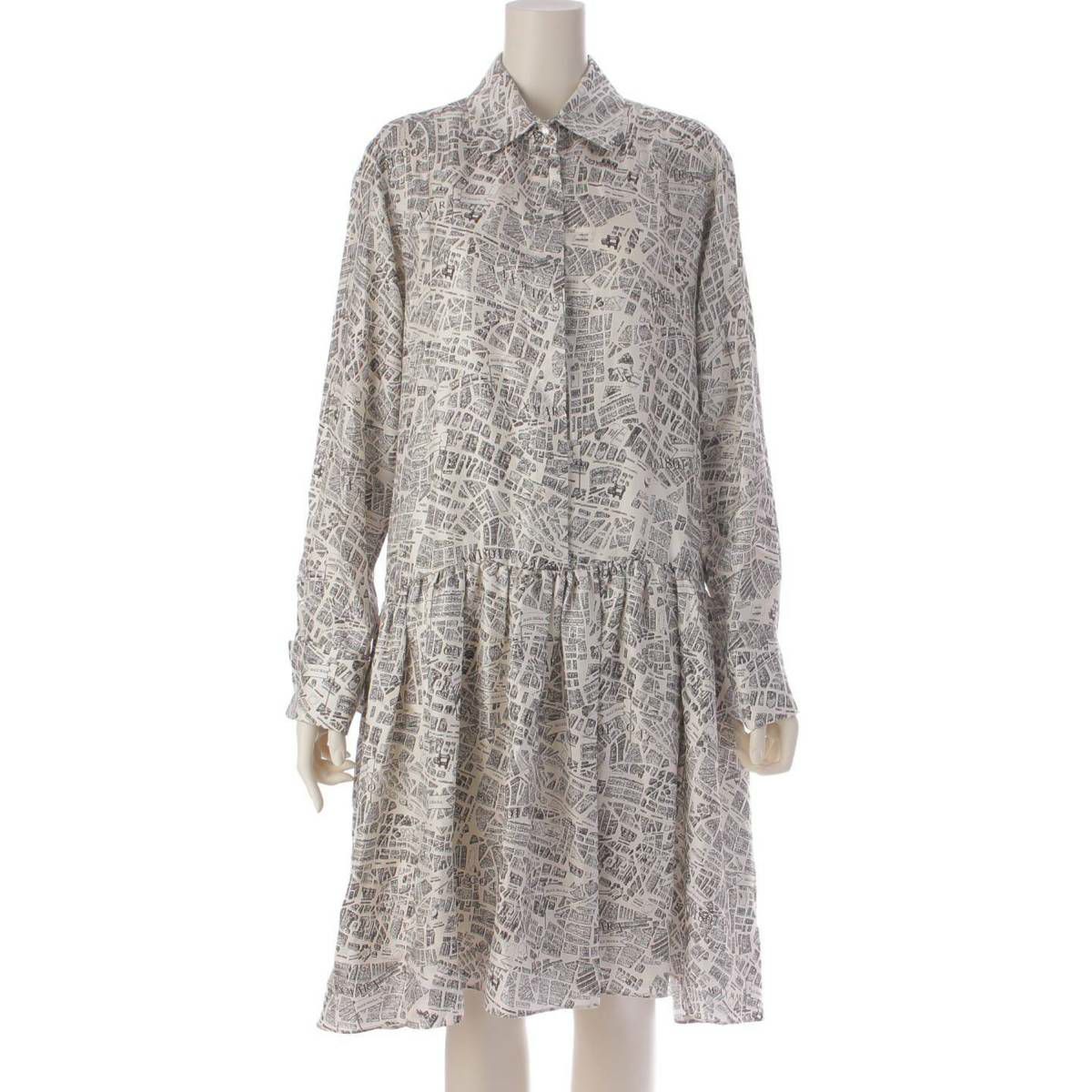 マックスマーラ Max mara EAGLES シルク ツイル シャツ ワンピース ホワイト ブラック 44