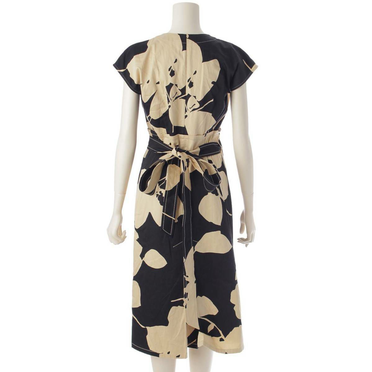 マックスマーラ Max mara コットン ノースリーブ ベルテッド ワンピース ドレス ブラック×ベージュ 36