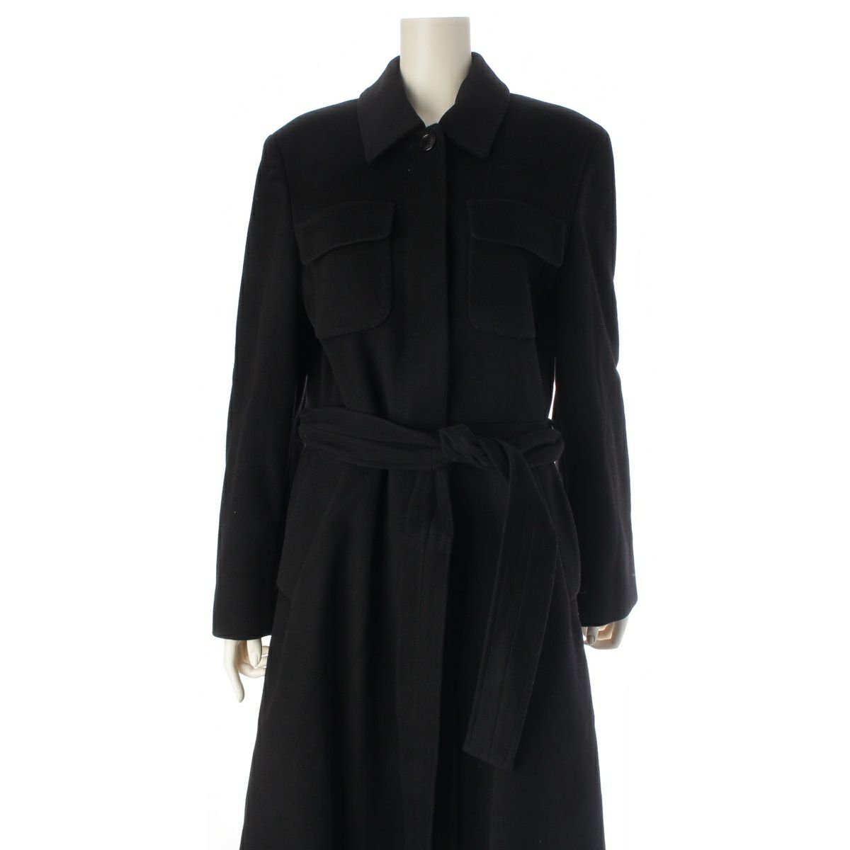 他の画像を見る MAX MARA マックスマーラ ウール カシミヤ ベルテッド ロング ステンカラーコート ブラック 42 お気に入りに登録する 当店特別価格 ¥ 35,200 税込 円 32,000円