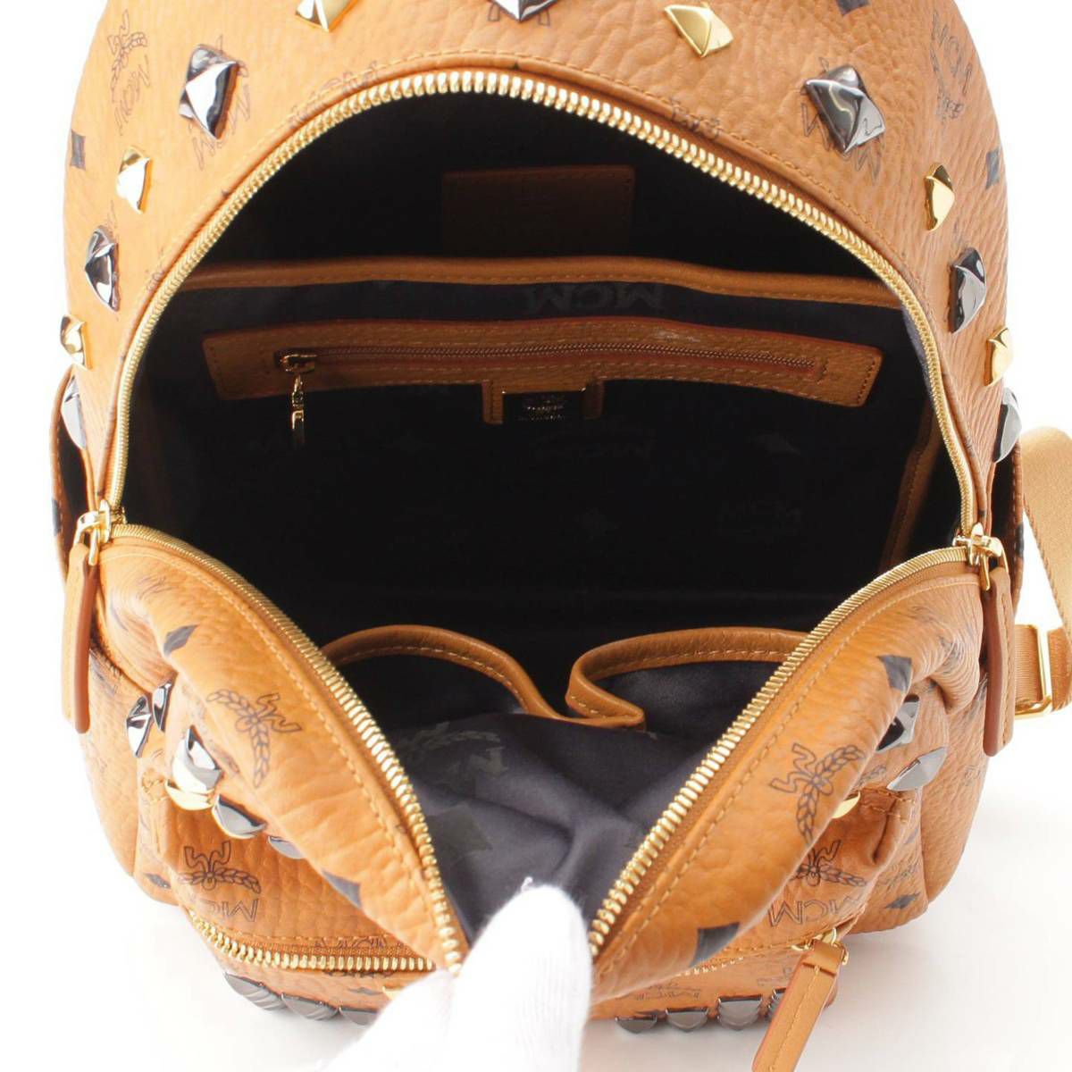 持ち手部分にコバ割れや変形、バック内ファスナー部分に傷あり