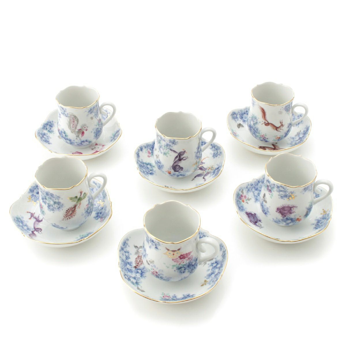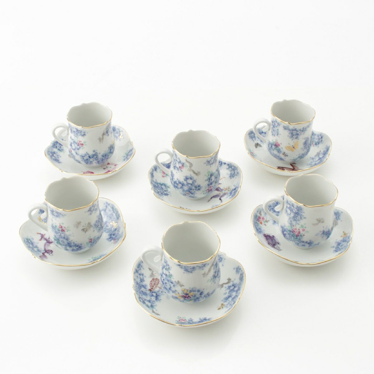 マイセン ミッドサマーナイトドリーム 真夏の夜の夢 モカ デミタス ティーカップ&ソーサ― 6客セット 食器 ホワイト