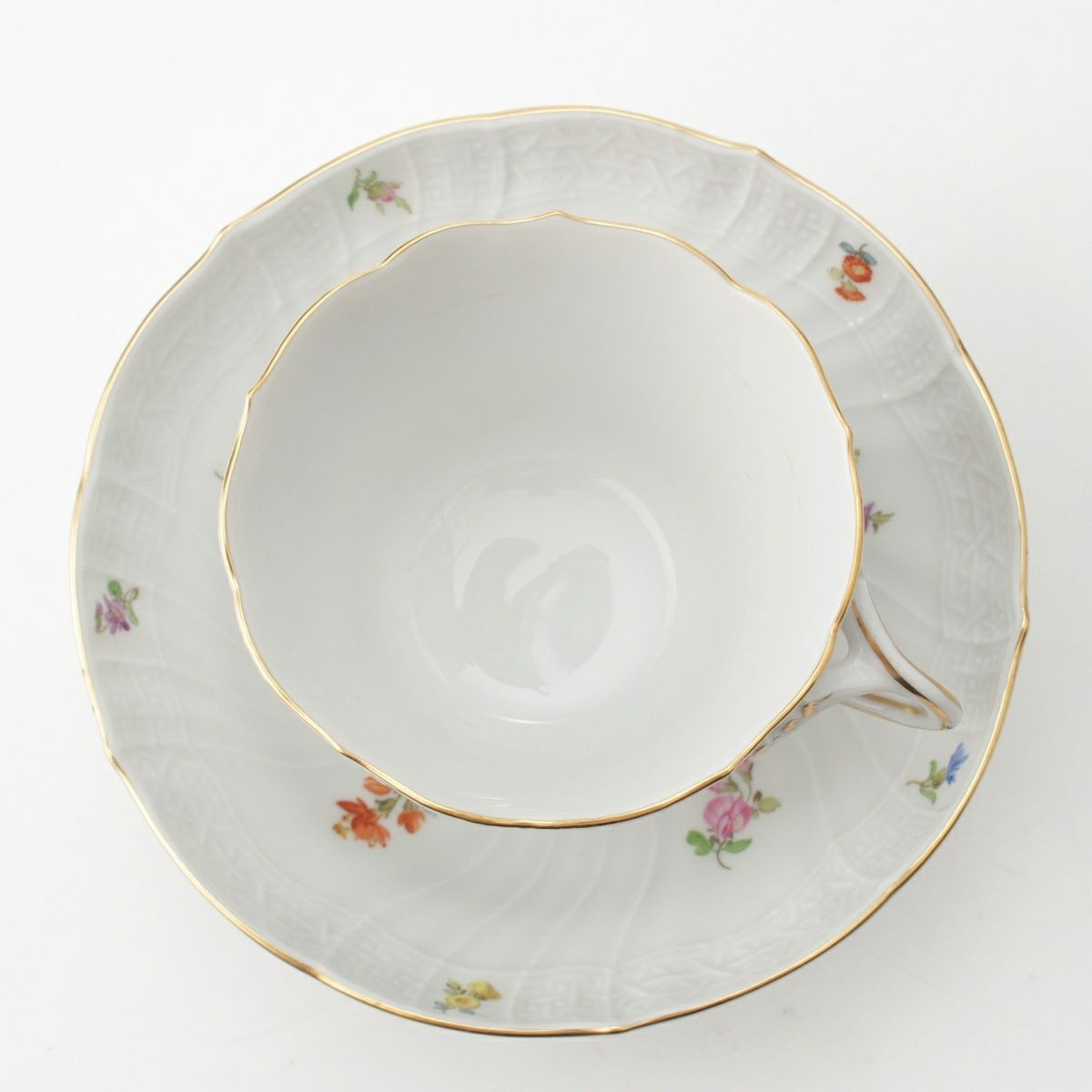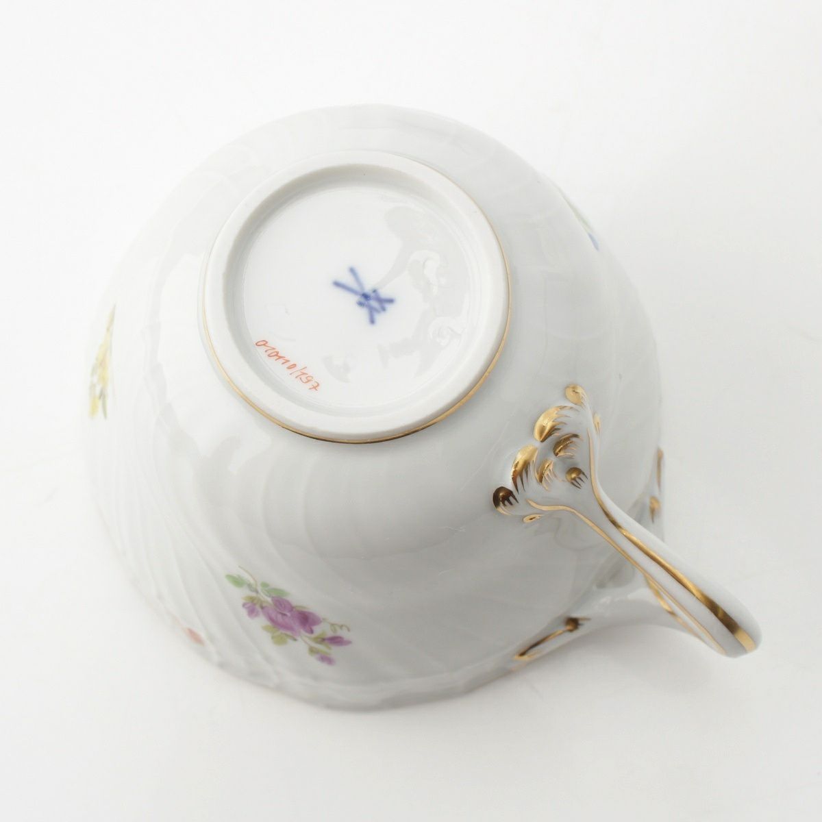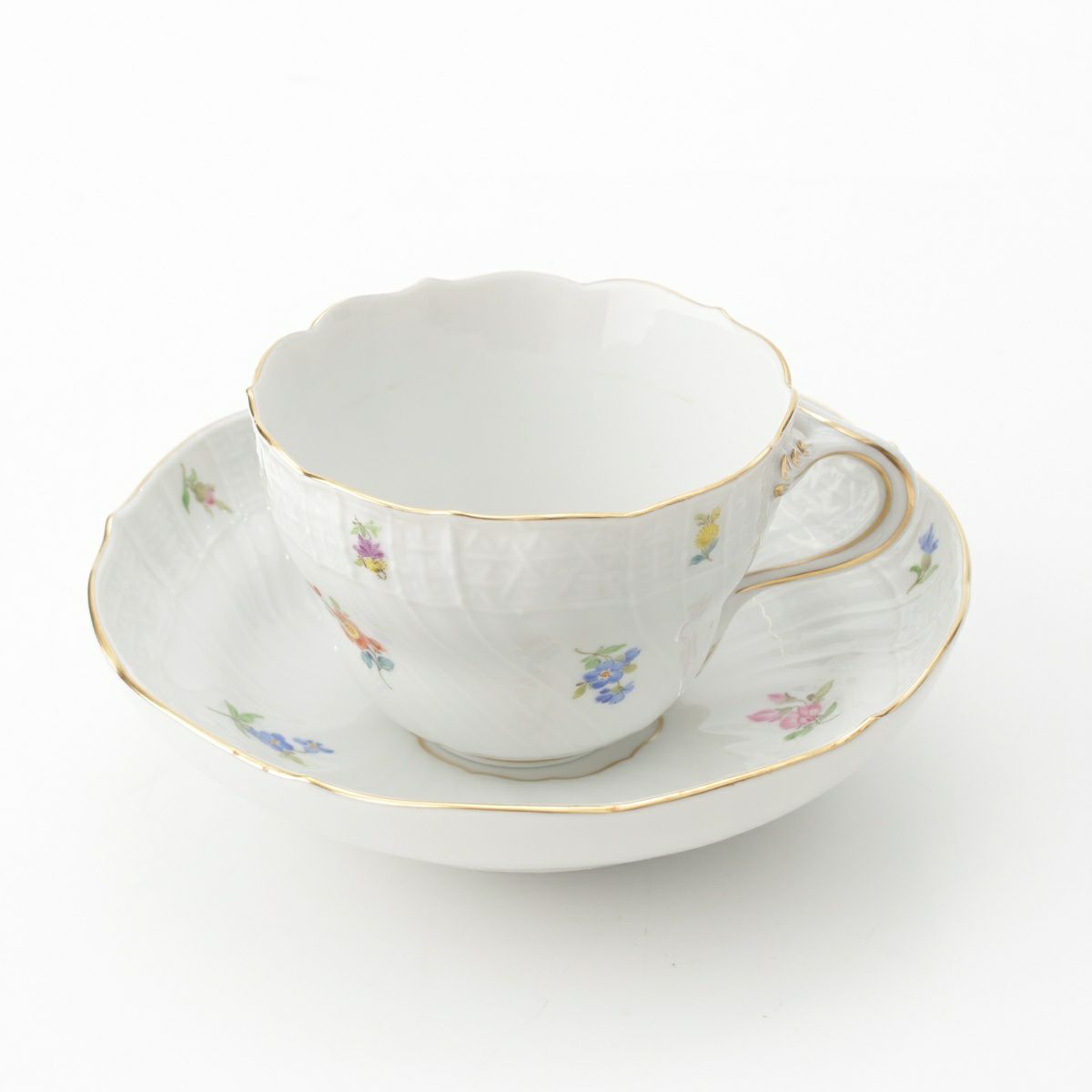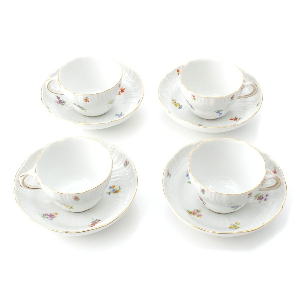 マイセン 陶器 散らし小花 4客セット 食器 ティー カップ&ソーサー ホワイト マルチカラー