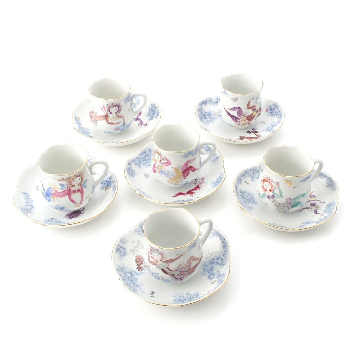マイセン 陶器 ミッドサマーナイトドリーム 真夏の夜の夢 6客セット 食器 コーヒー カップ&ソーサ― ホワイト マルチカラー