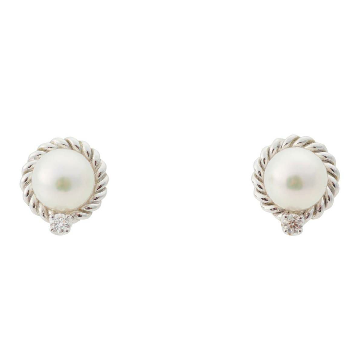 ミキモト Mikimoto パール ダイヤ 2way ピアス ジュエリー K18 ホワイトゴールド 3.6g 6mm~6.5mm