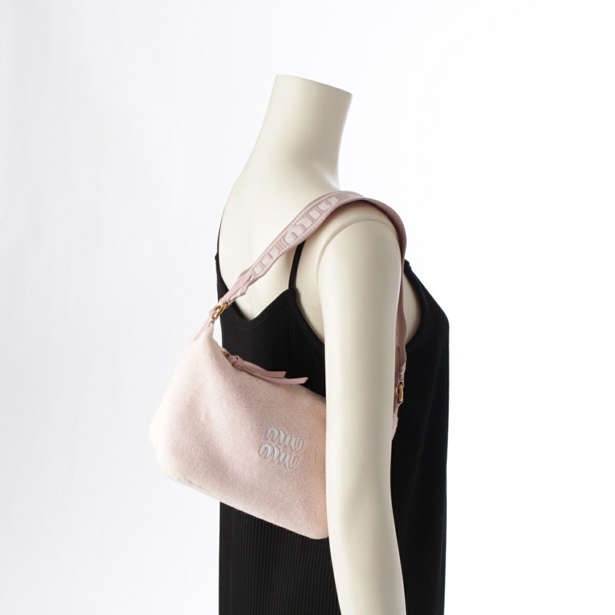 ミュウミュウ スピリット シーレ ミニバッグ コットン テリークロス パイル ロゴ刺繍 ワンショルダー バッグ クロスボディ 5NE841 ライトピンク