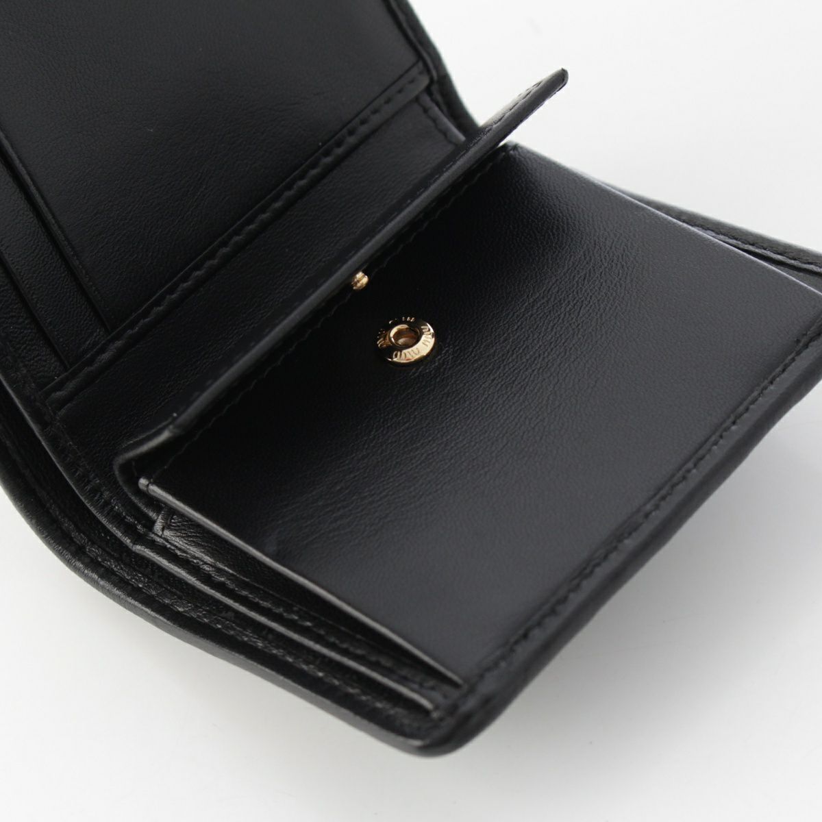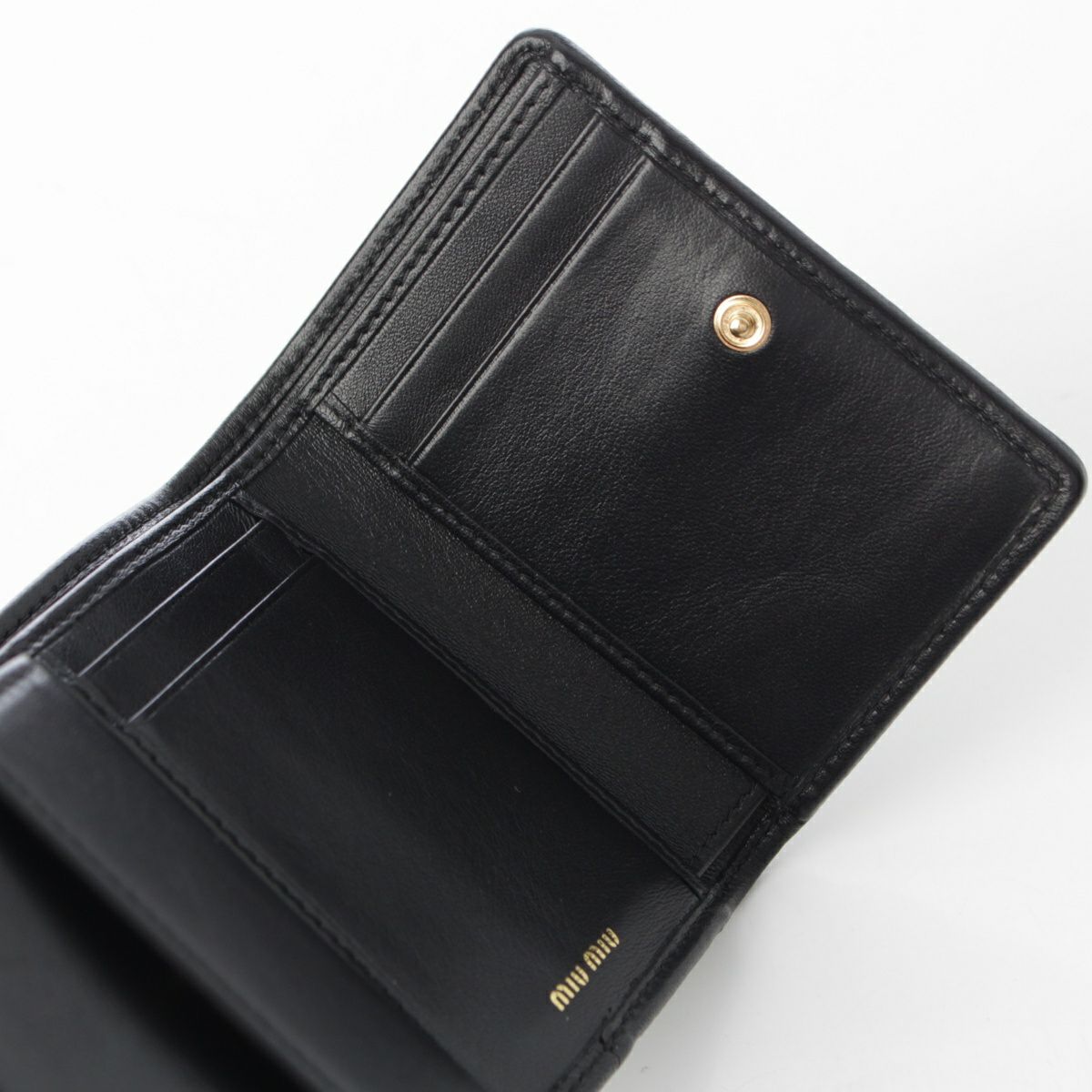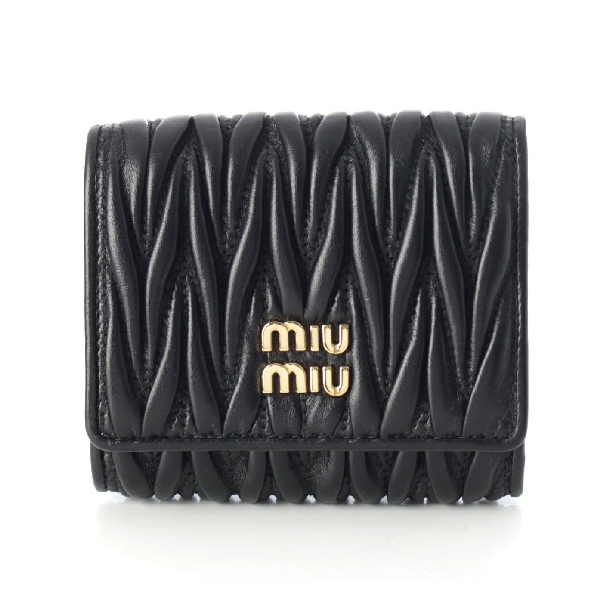 ミュウミュウ レザー マテラッセ ロゴ 三つ折り財布 コンパクトウォレット 5MH033 ブラック