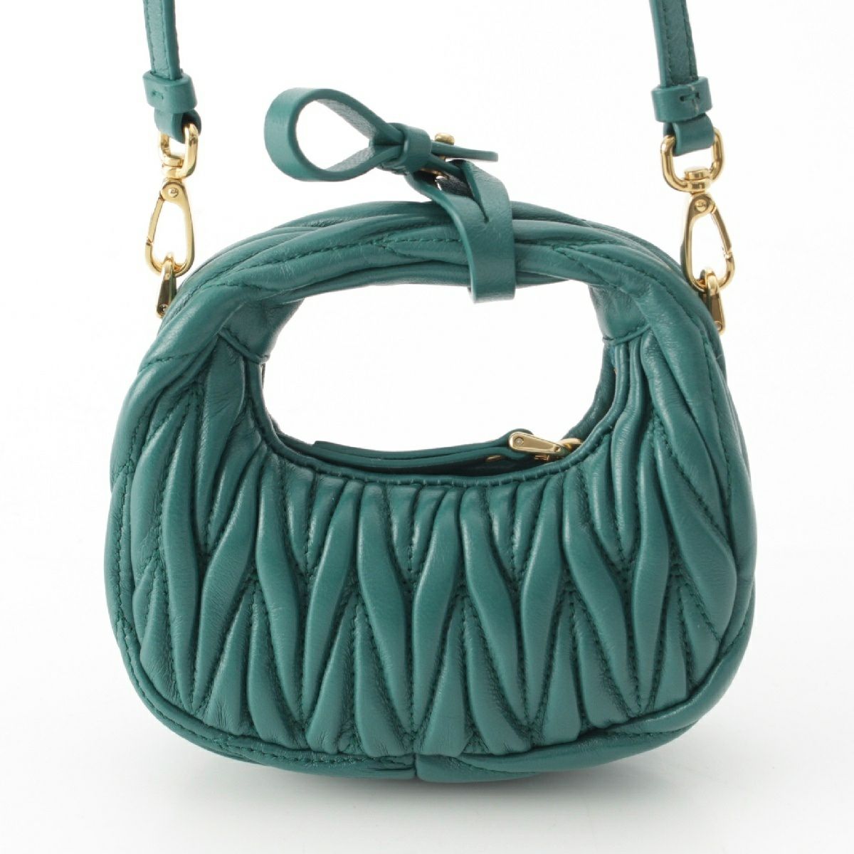 ミュウミュウ マテラッセ ワンダー ホーボー レザー ロゴ 2way ショルダー ハンドバッグ 5NR019 グリーン