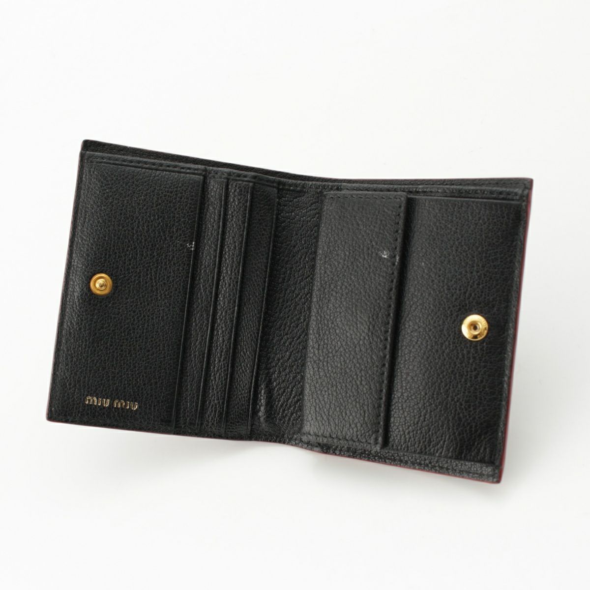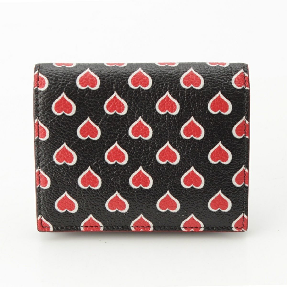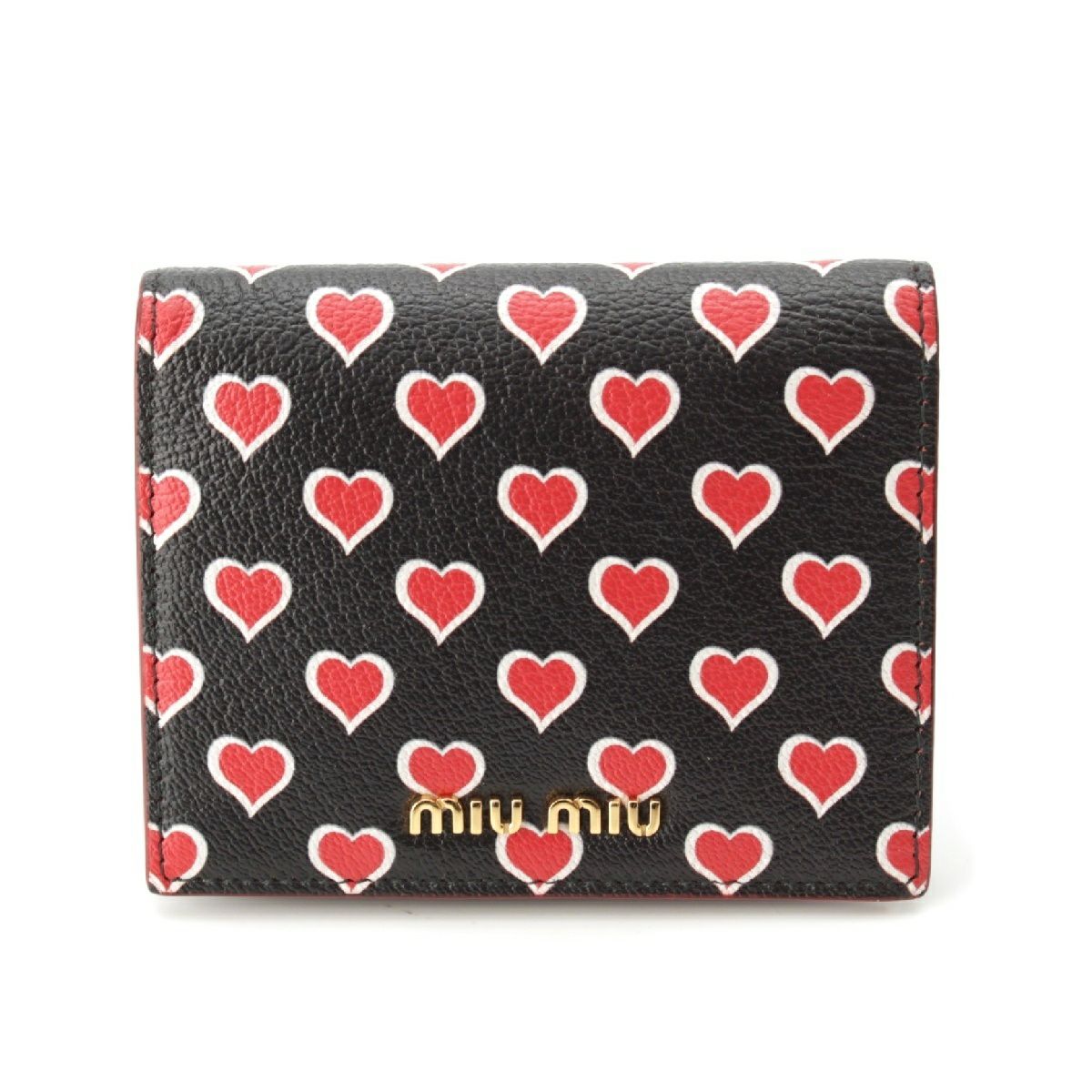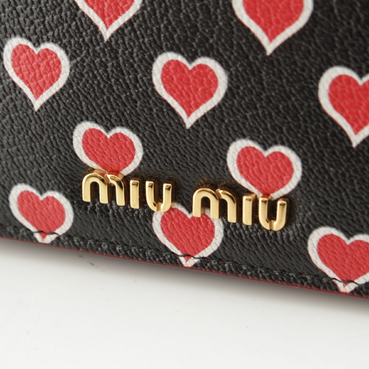 ミュウミュウ レザー ロゴ ハート総柄 コインケース コンパクトウォレット 5MV204 ブラック レッド ゴールド金具