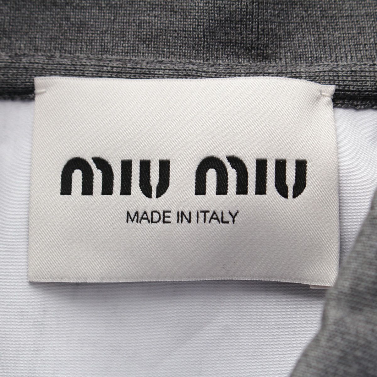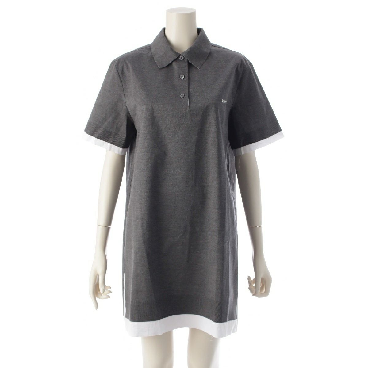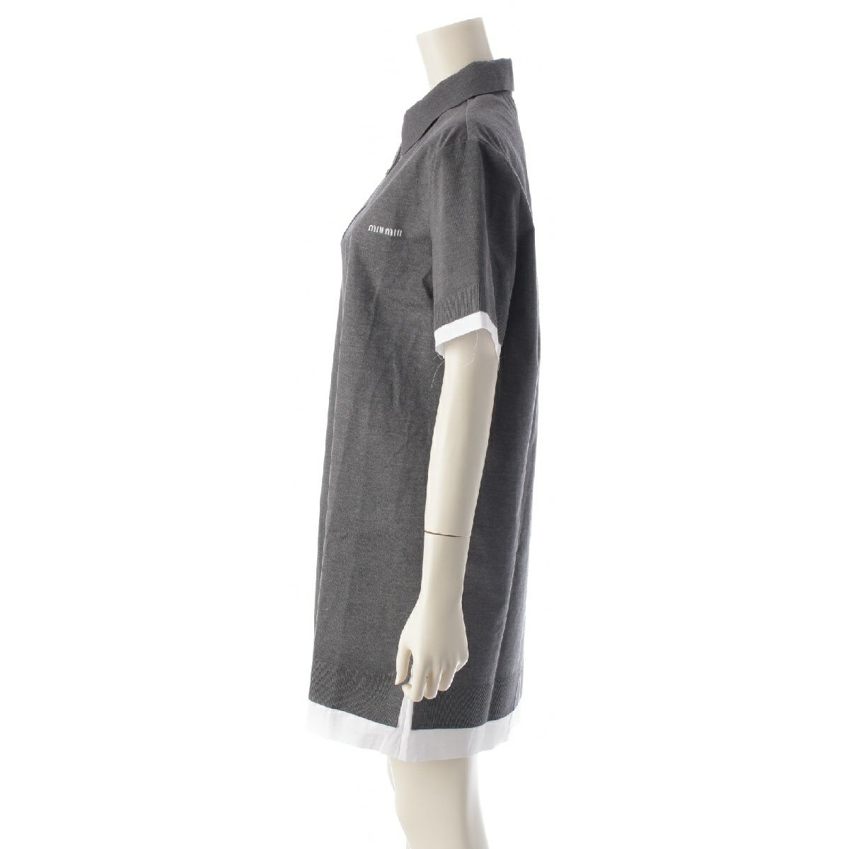 ミュウミュウ 24-25SS リサイクルシルク コットン ポプリン ロゴ 半袖 ニット ポロシャツ ワンピース ドレス MF5612 グレー 40