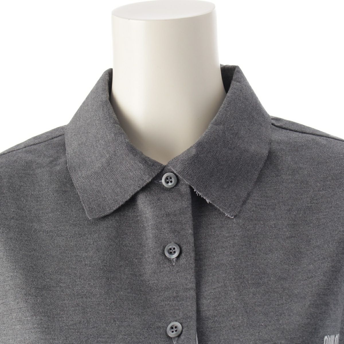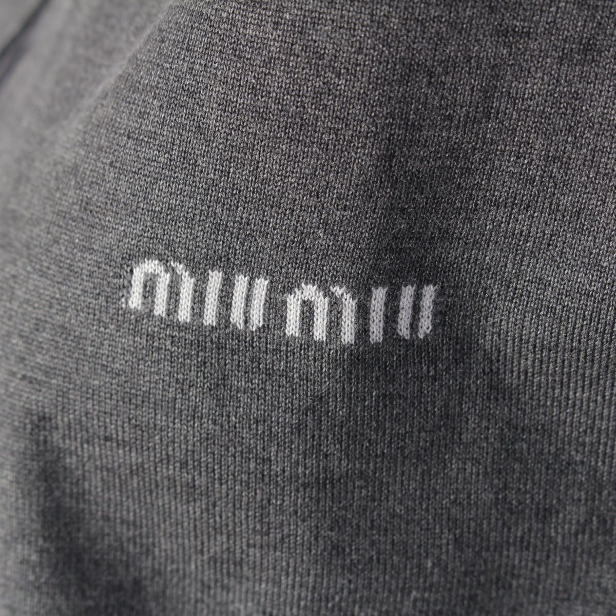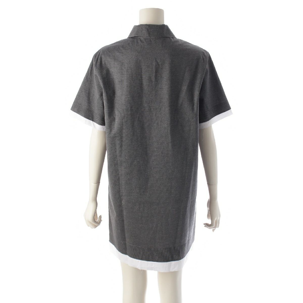 ミュウミュウ 24-25SS リサイクルシルク コットン ポプリン ロゴ 半袖 ニット ポロシャツ ワンピース ドレス MF5612 グレー 40